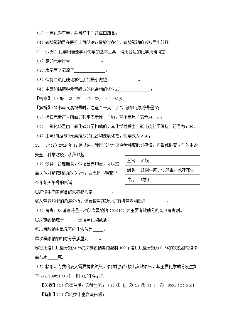 【文档名称】 2020年甘肃陇南中考化学真题及答案(Word版).doc
