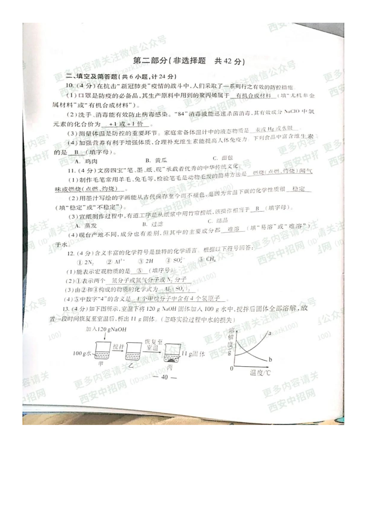 【文档预览】 无忧考网整理发布2020年陕西延安中考化学真题及答案(图片版),前五页预览如下: