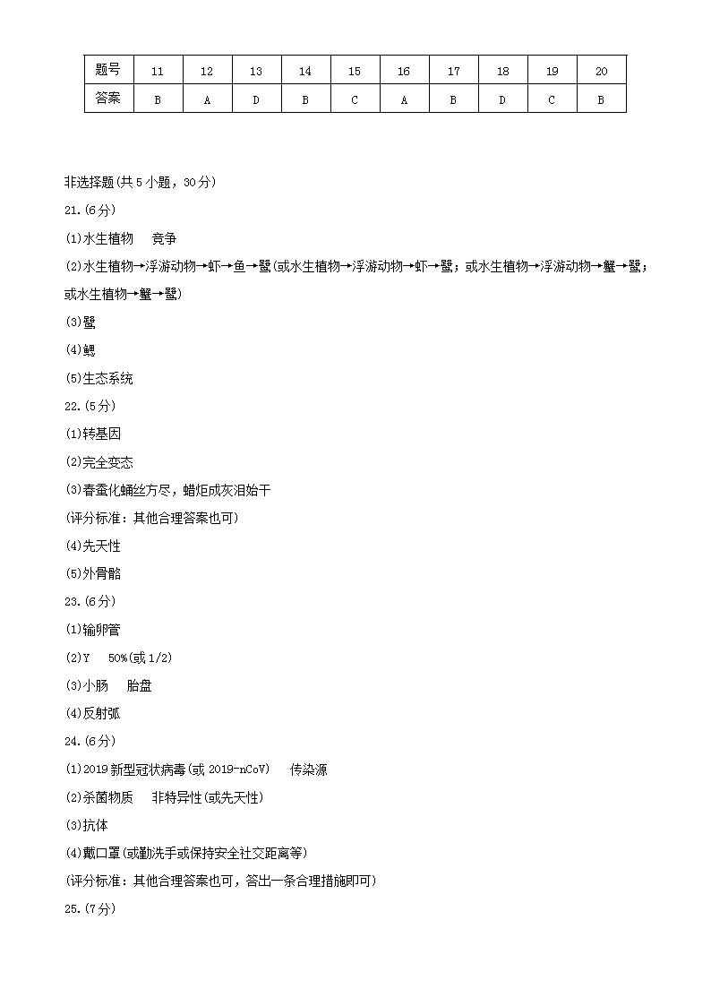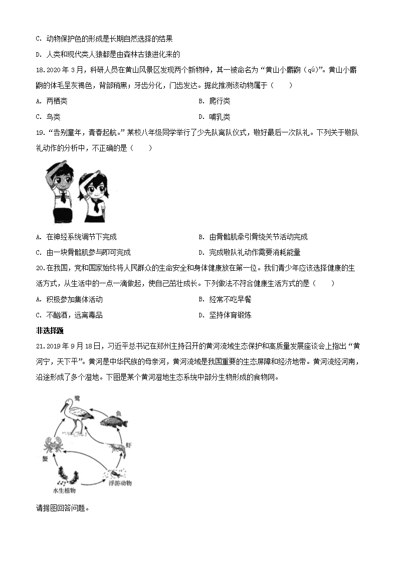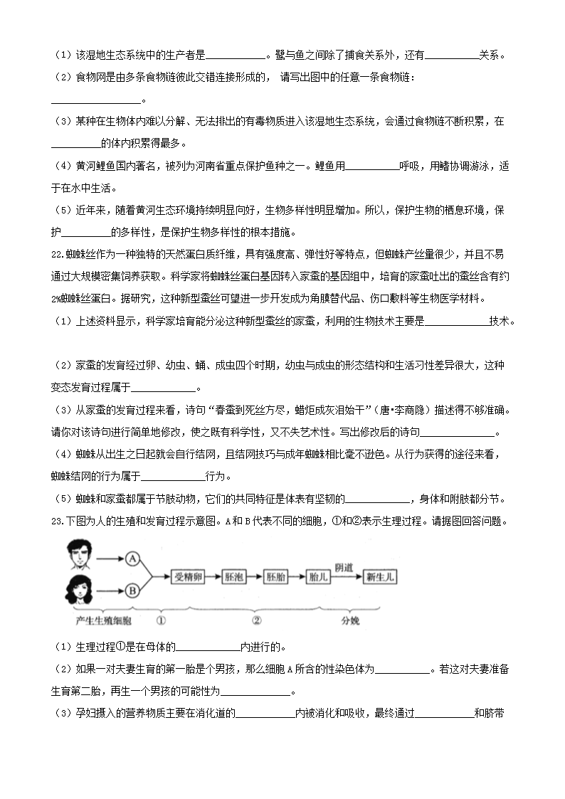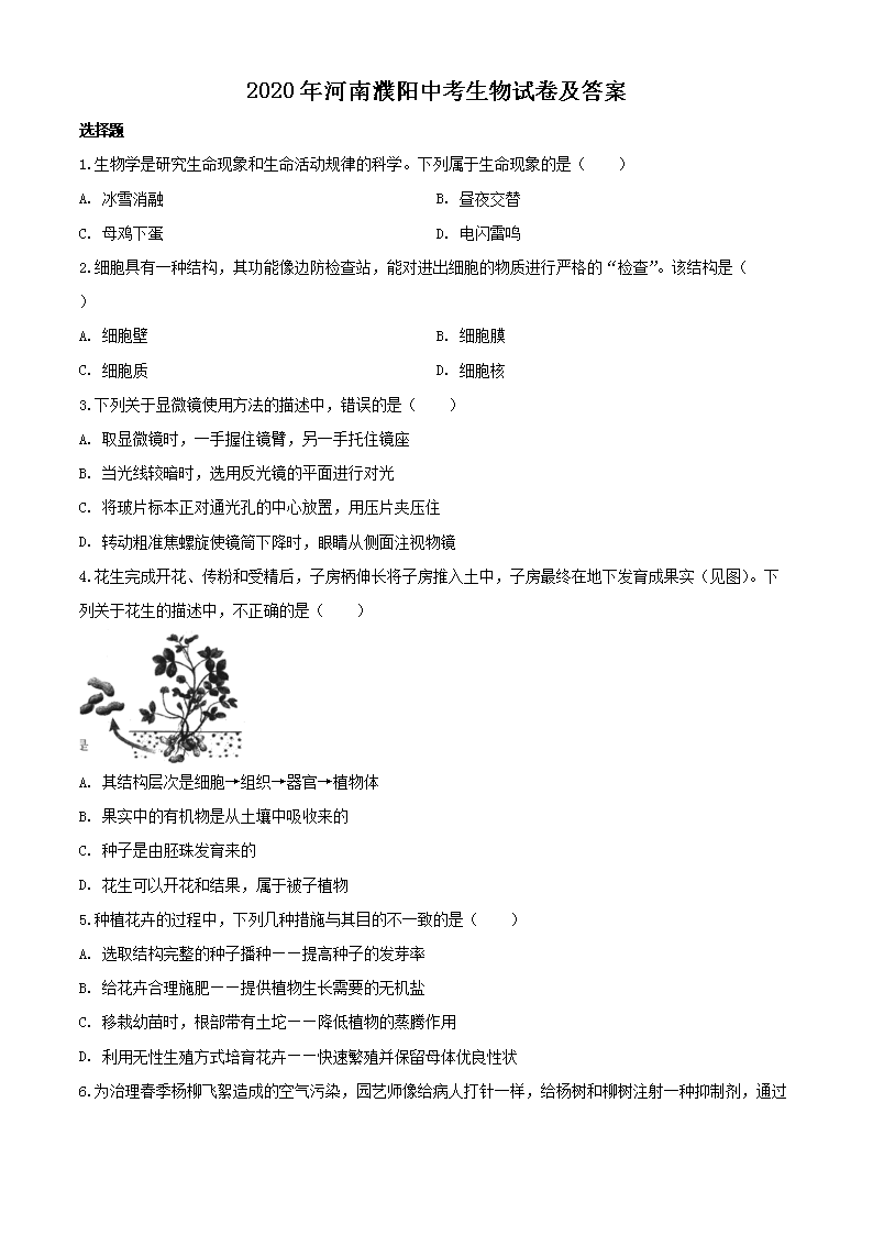 【文档名称】 2020年河南濮阳中考生物试卷及答案(Word版).doc