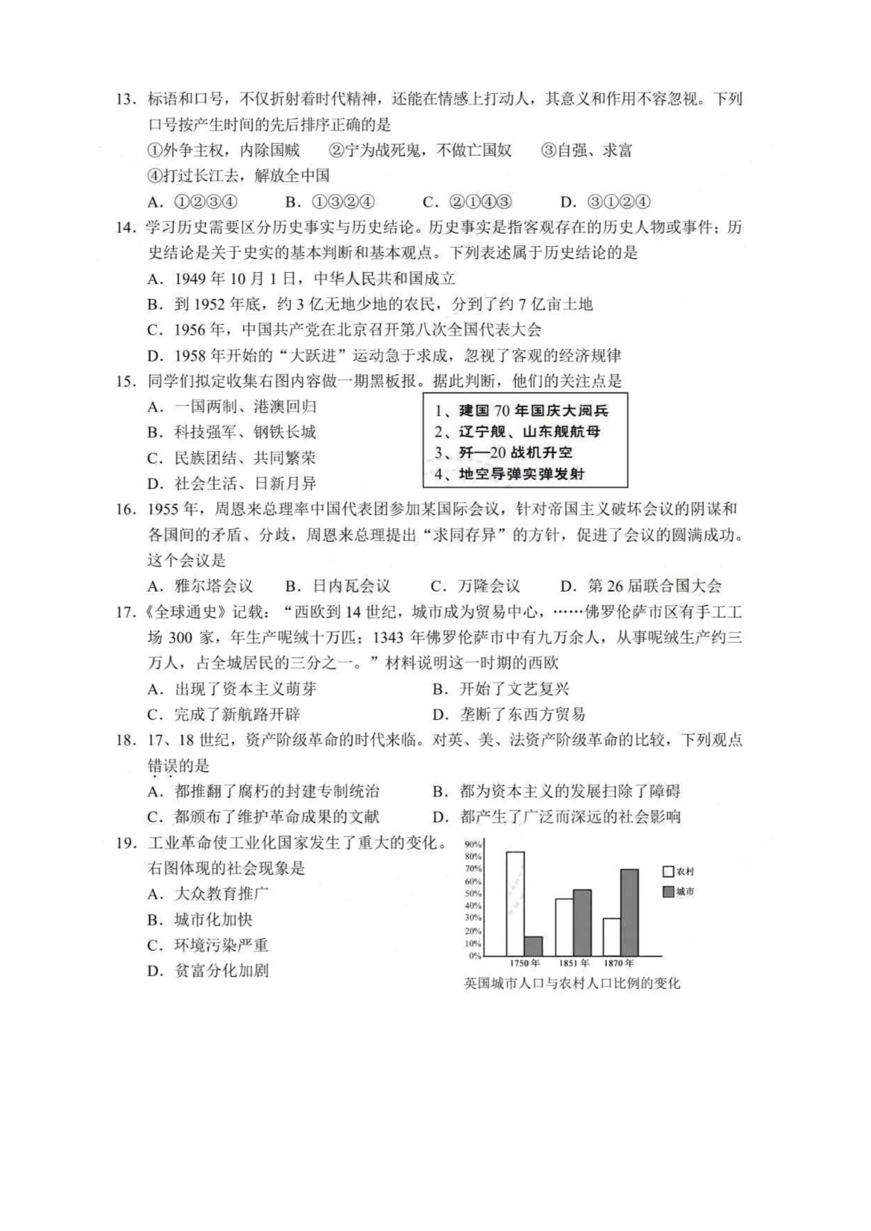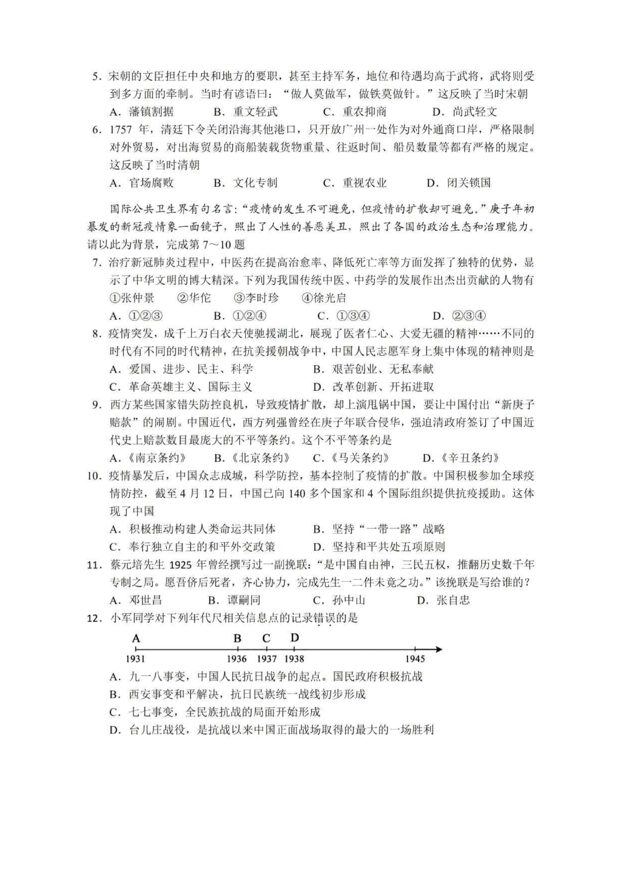 【文档名称】 2020年湖北孝感市中考历史试卷及答案(图片版).doc