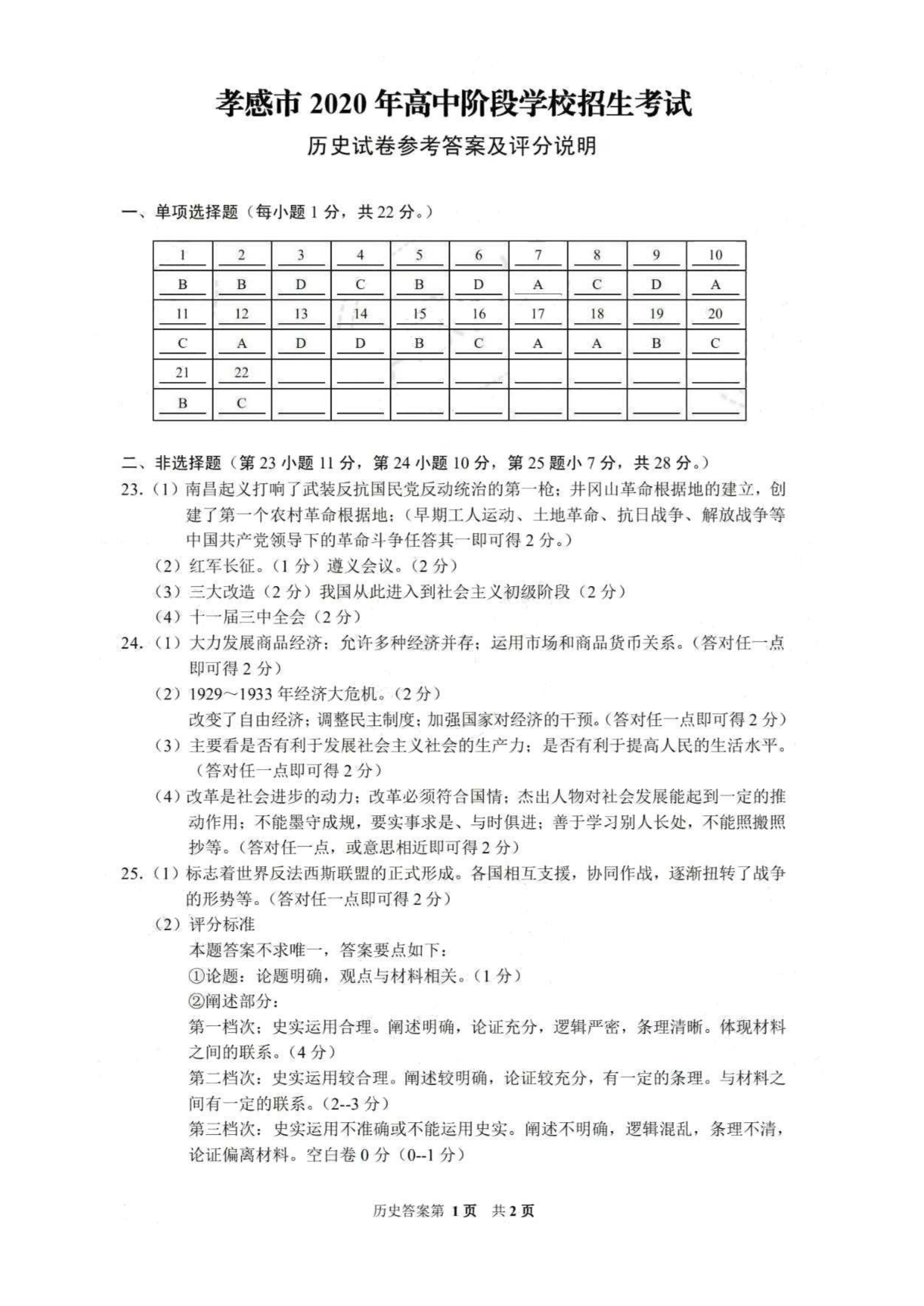 【文档预览】 无忧考网整理发布2020年湖北孝感市中考历史试卷及答案(图片版),前五页预览如下: