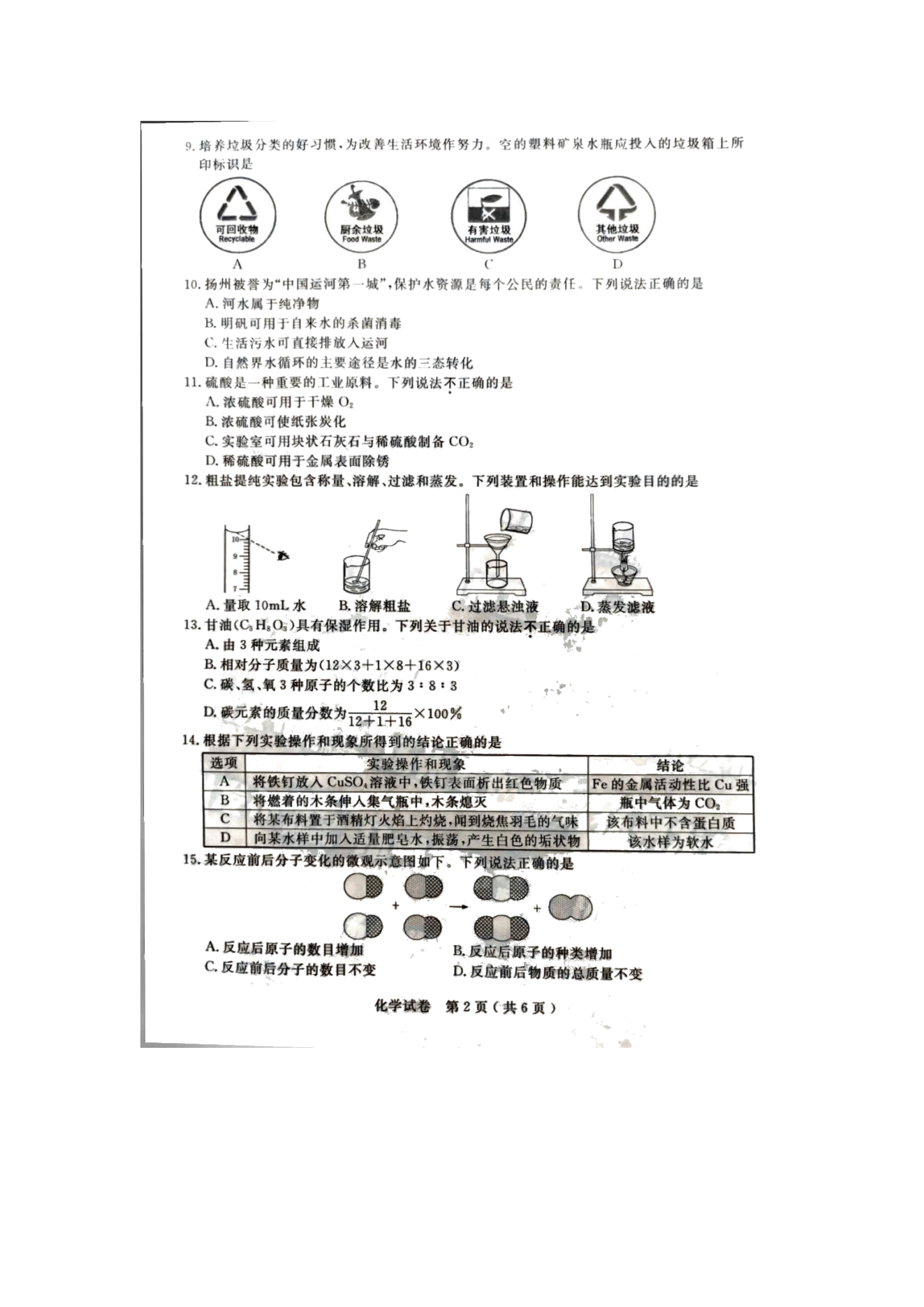 【文档名称】 2020年江苏扬州中考化学真题及答案(图片版).doc