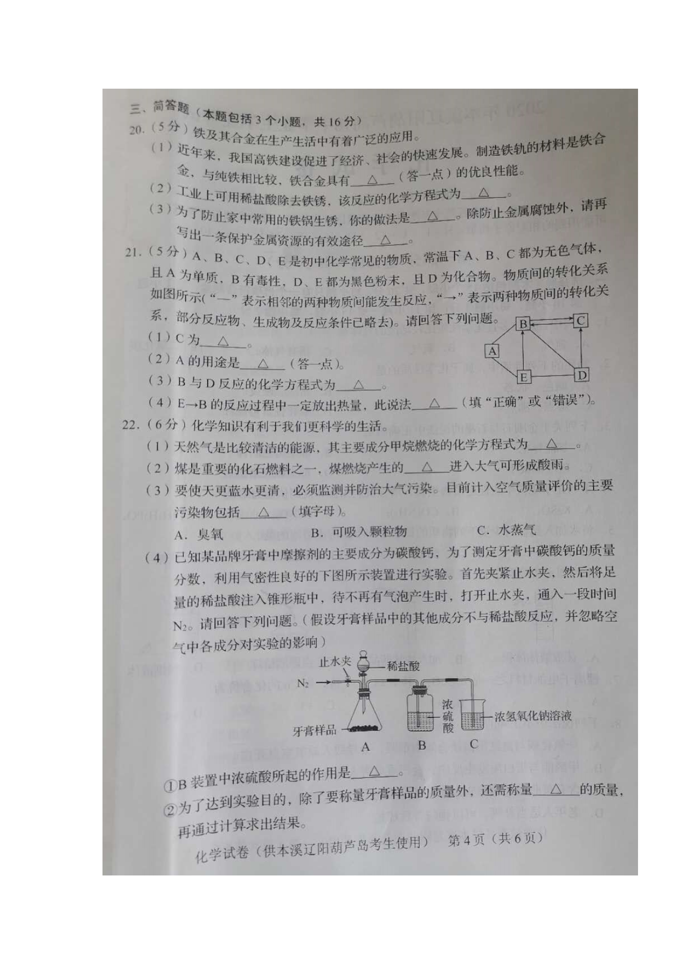 【文档预览】 无忧考网整理发布2020年辽宁辽阳中考化学真题及答案(图片版),前五页预览如下: