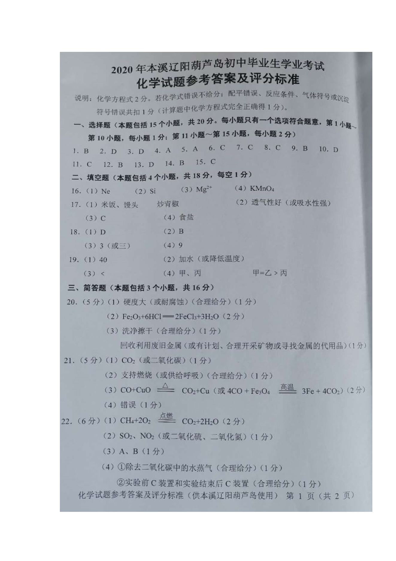 【文档名称】 2020年辽宁辽阳中考化学真题及答案(图片版).doc