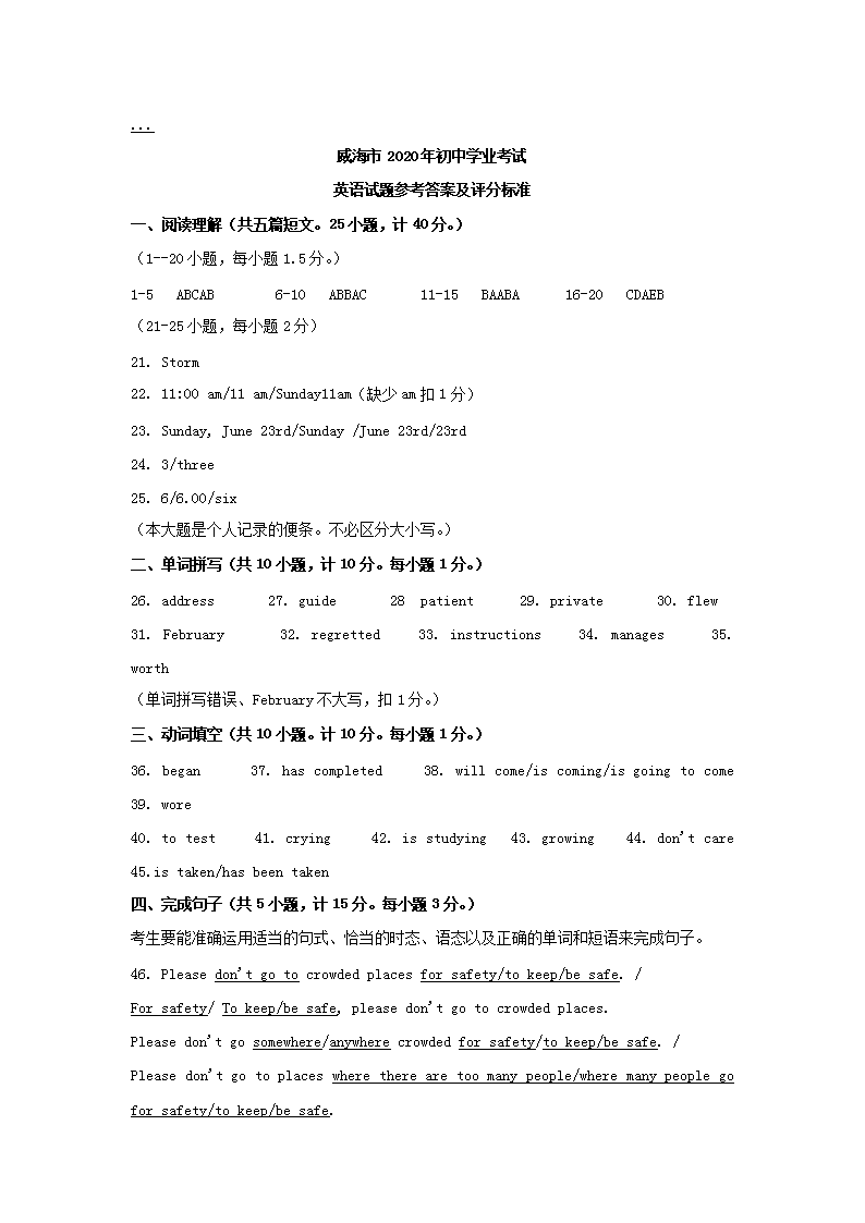 【文档预览】 无忧考网整理发布2020年山东威海中考英语真题及答案(Word版),前五页预览如下: