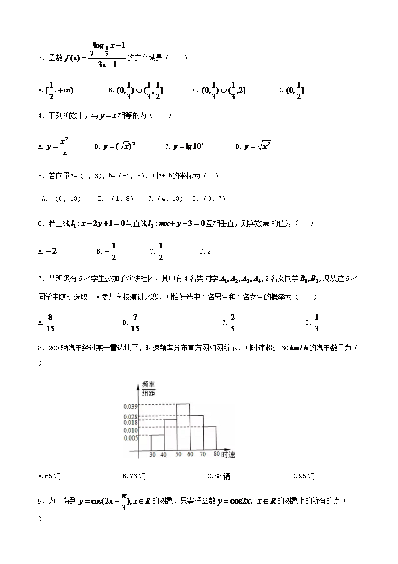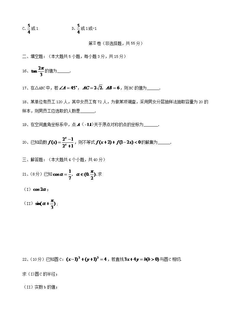 【文档名称】 2019年天津普通高中会考数学真题及答案(Word版).doc