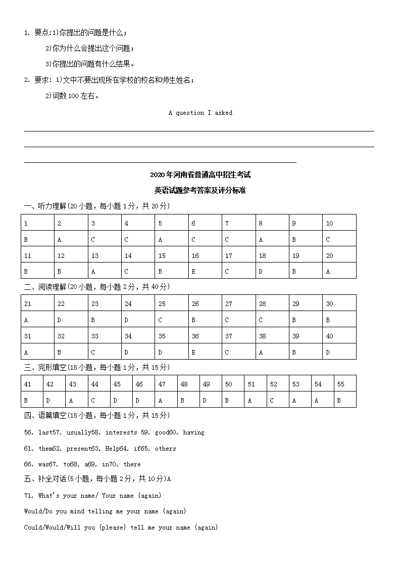 【文档名称】 2020年河南省驻马店中考英语试卷及答案(Word版).doc