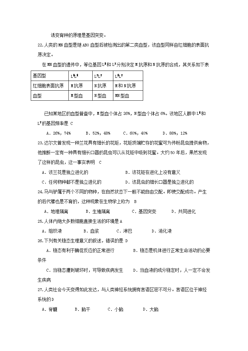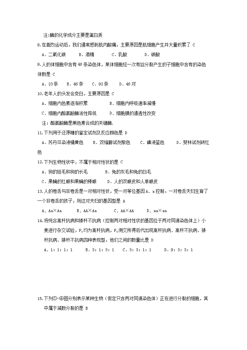 【文档名称】 2013年天津普通高中会考生物真题及答案(Word版).doc