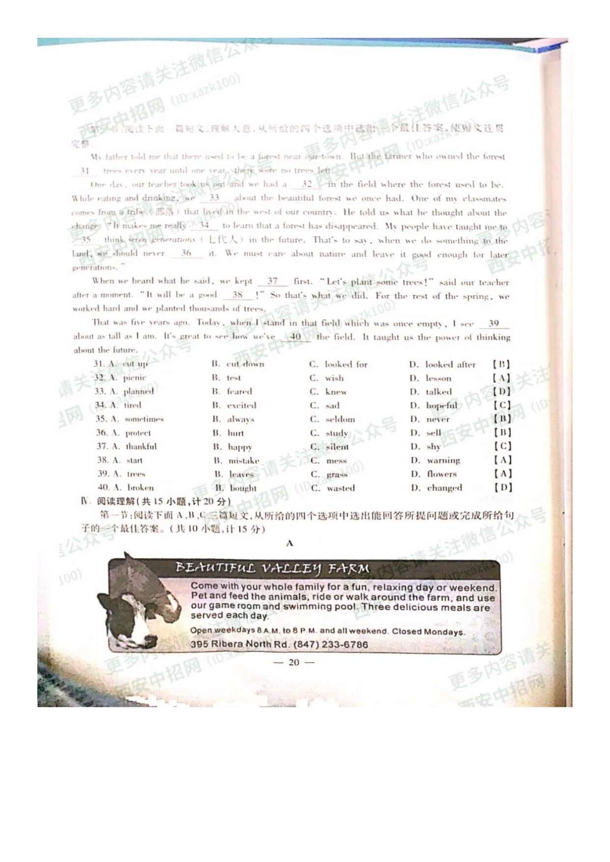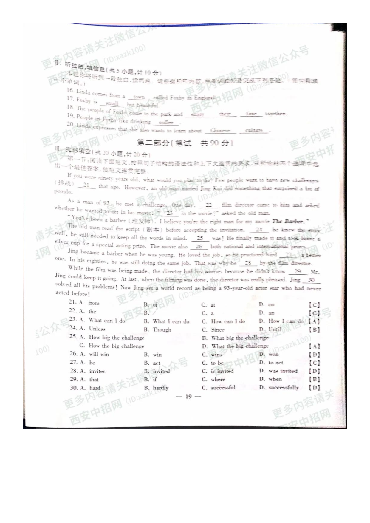 【文档预览】 无忧考网整理发布2020年陕西渭南中考英语真题及答案(图片版),前五页预览如下: