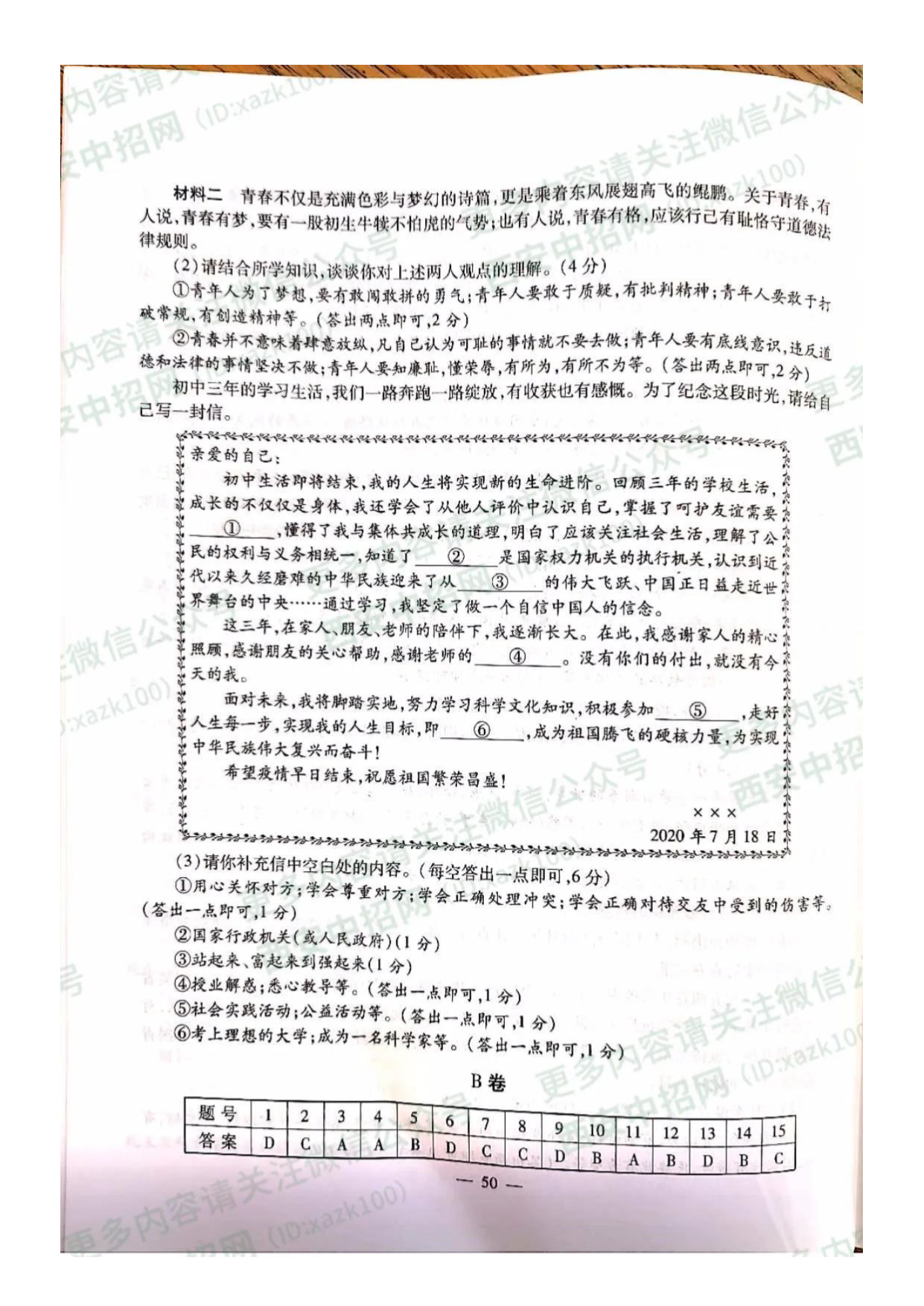 【文档预览】 无忧考网整理发布2020年陕西渭南中考政治真题及答案(图片版),前五页预览如下: