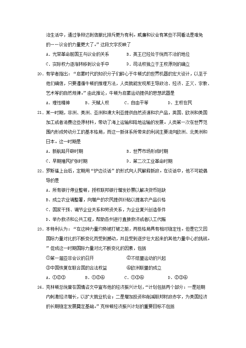 【文档名称】 2019年浙江普通高中会考历史真题及答案(Word版).doc