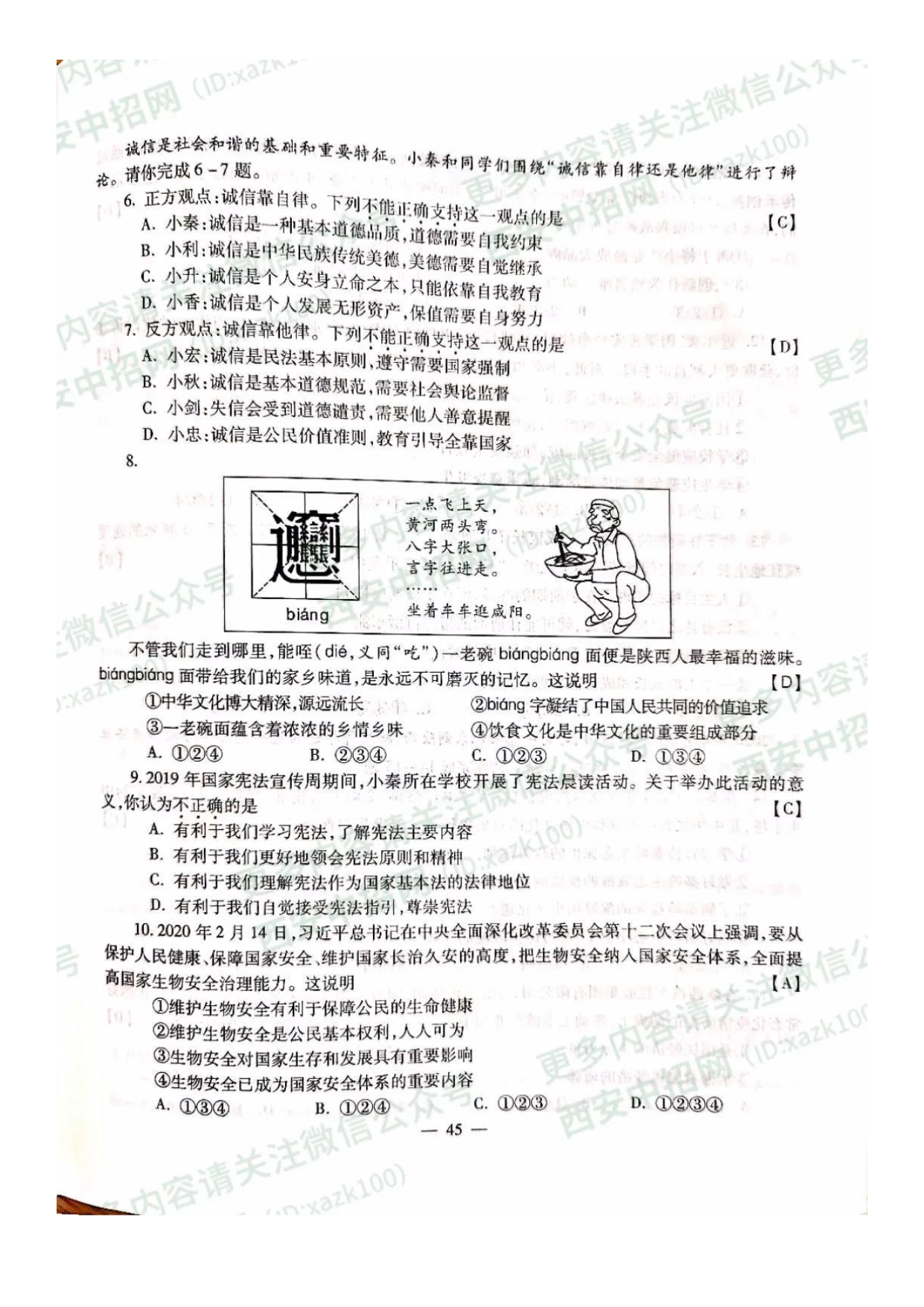 【文档名称】 2020年陕西宝鸡中考政治真题及答案(图片版).doc