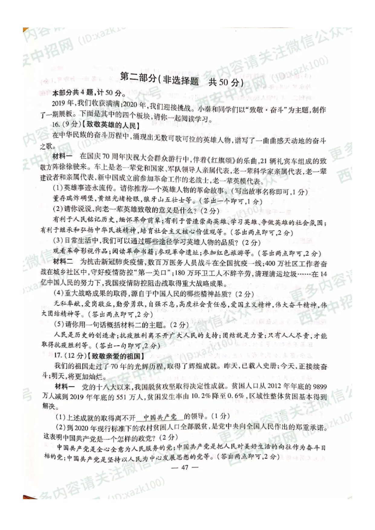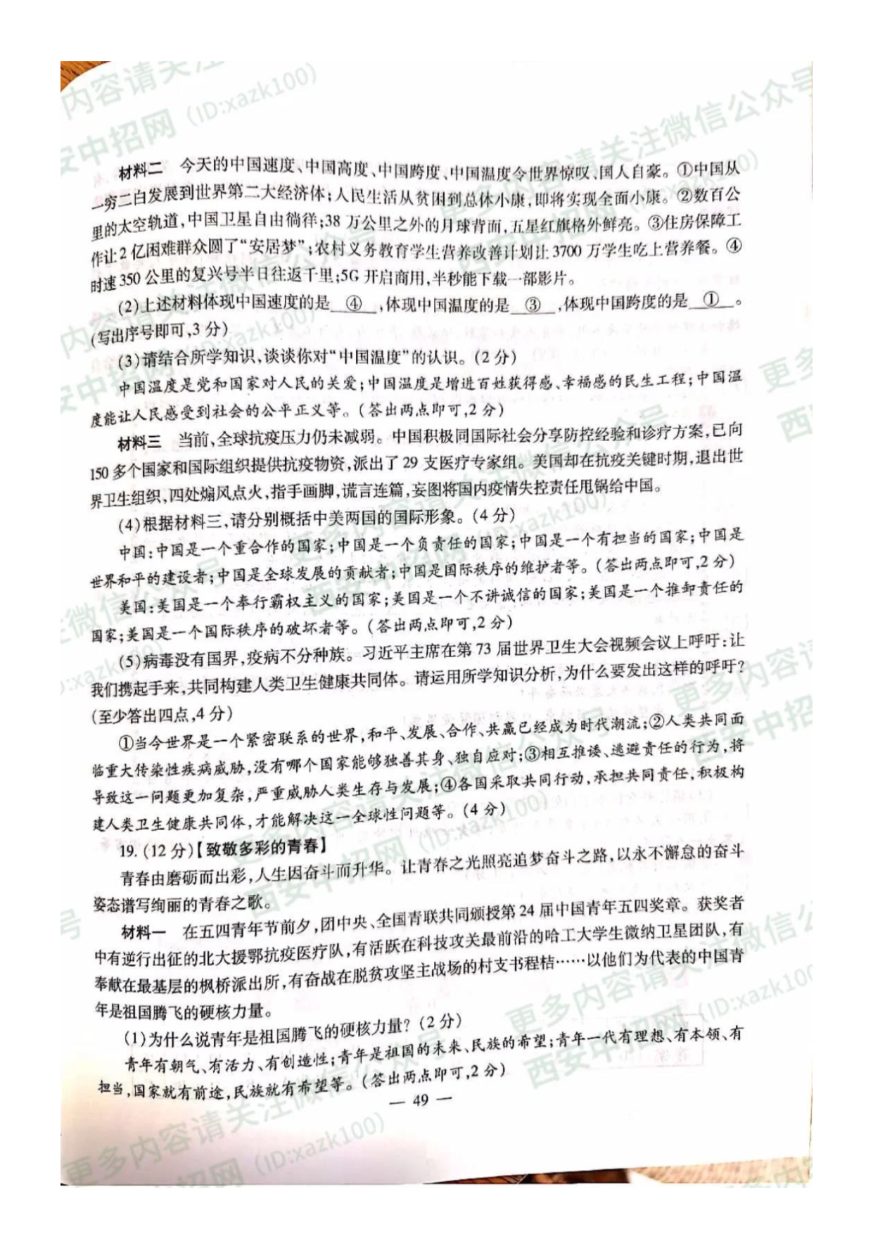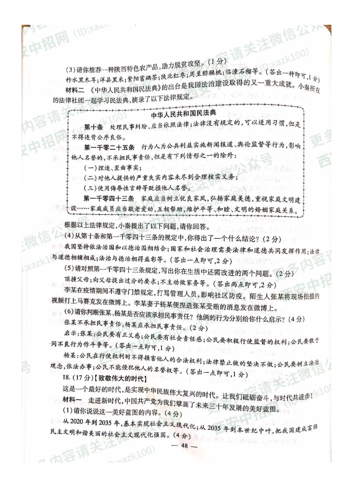 【文档预览】 无忧考网整理发布2020年陕西宝鸡中考政治真题及答案(图片版),前五页预览如下: