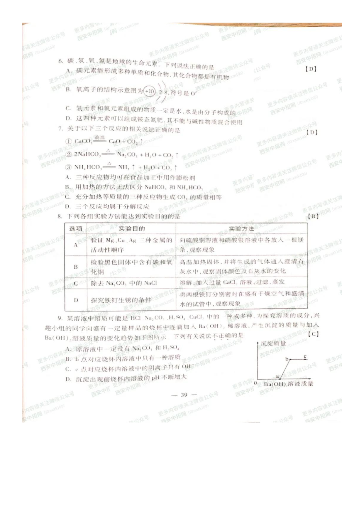 【文档预览】 无忧考网整理发布2020年陕西安康中考化学真题及答案(图片版),前五页预览如下: