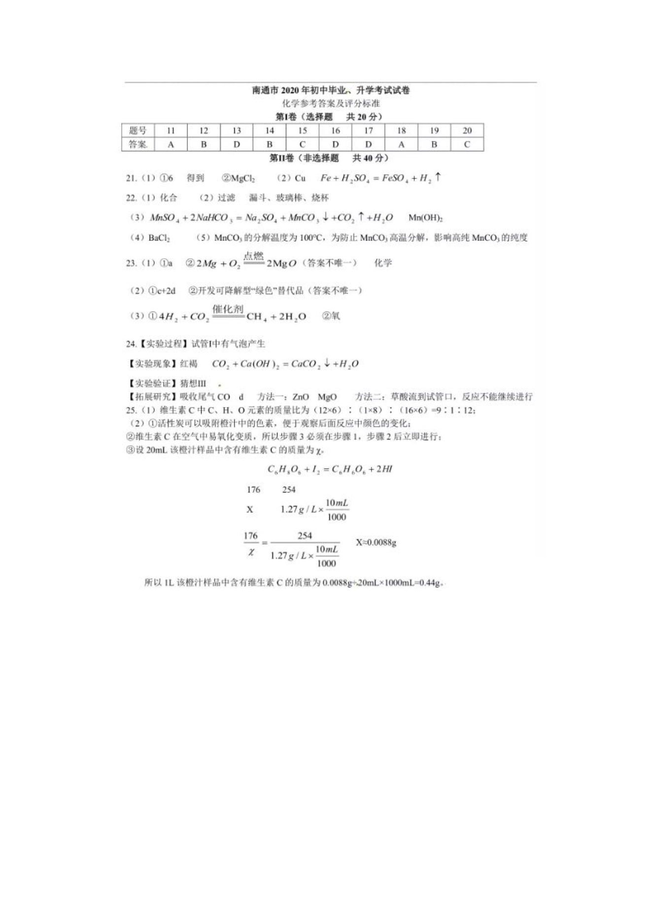 【文档预览】 无忧考网整理发布2020年江苏南通中考化学真题及答案(图片版),前五页预览如下: