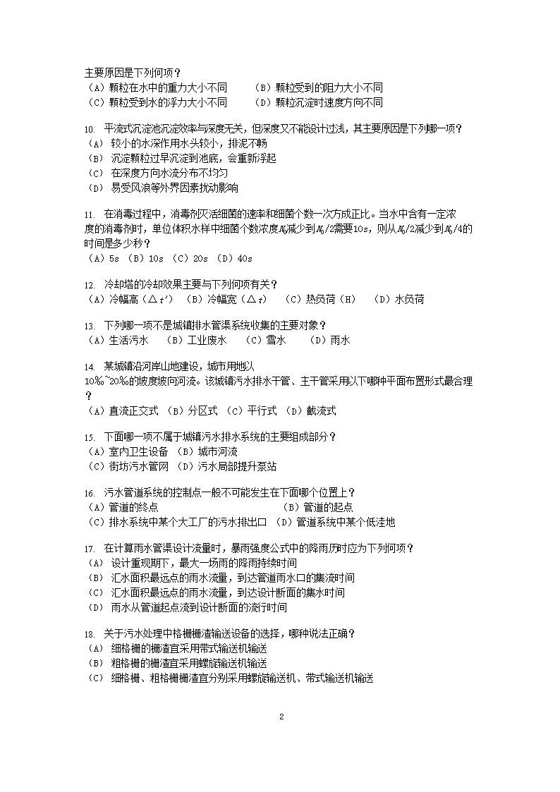 【文档名称】 2008年注册给排水工程师专业知识考试真题上午卷(Word版).doc