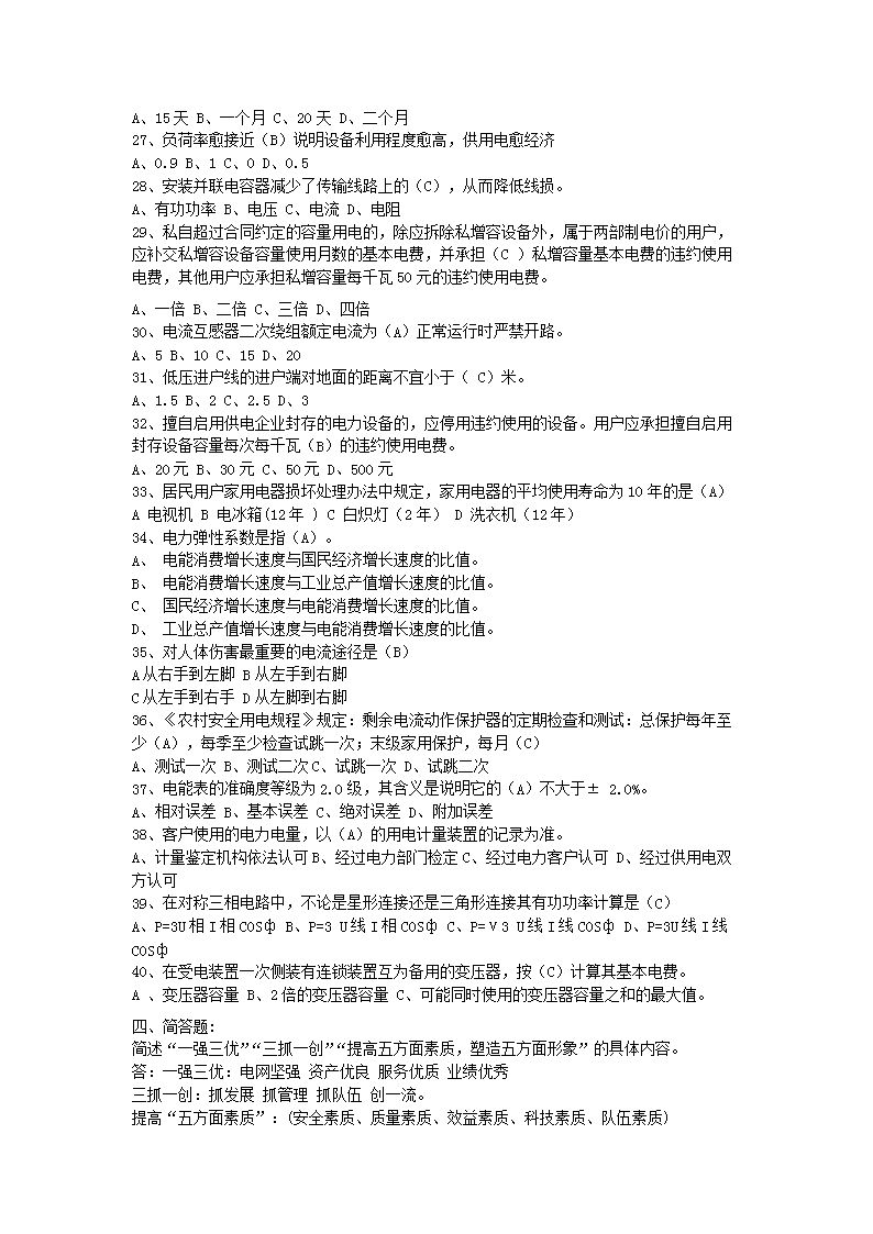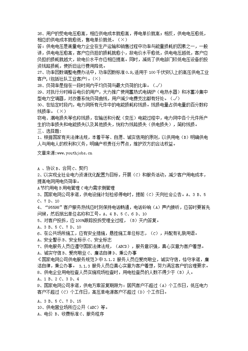 【文档名称】 国家电网公司招聘考试试题答案(Word版).doc