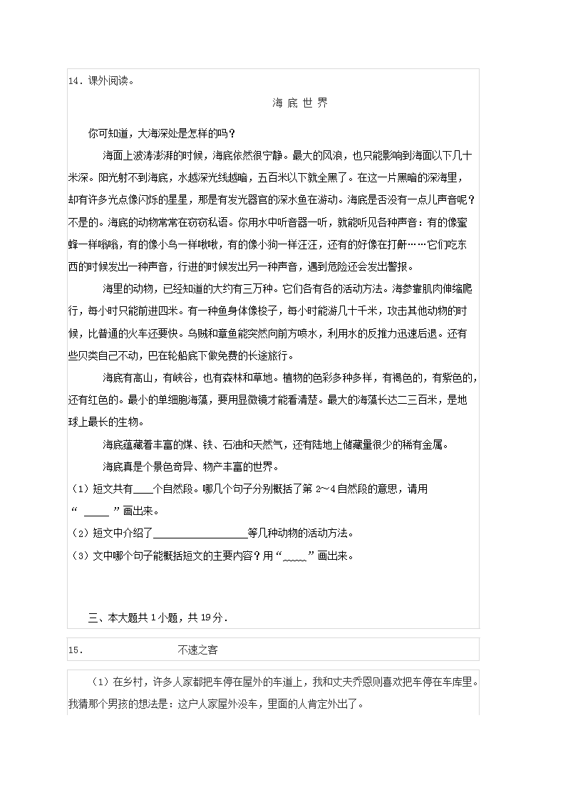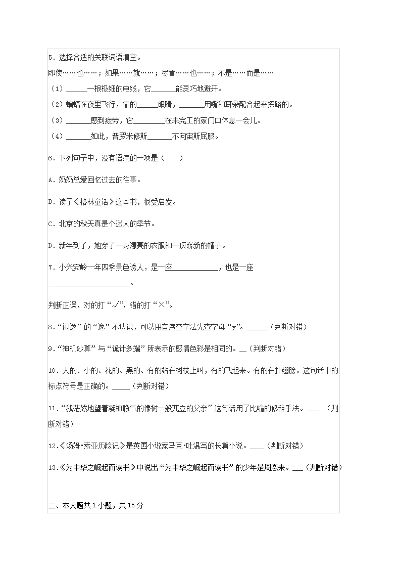 【文档名称】 2019年天津小升初语文真题及答案(Word版).doc