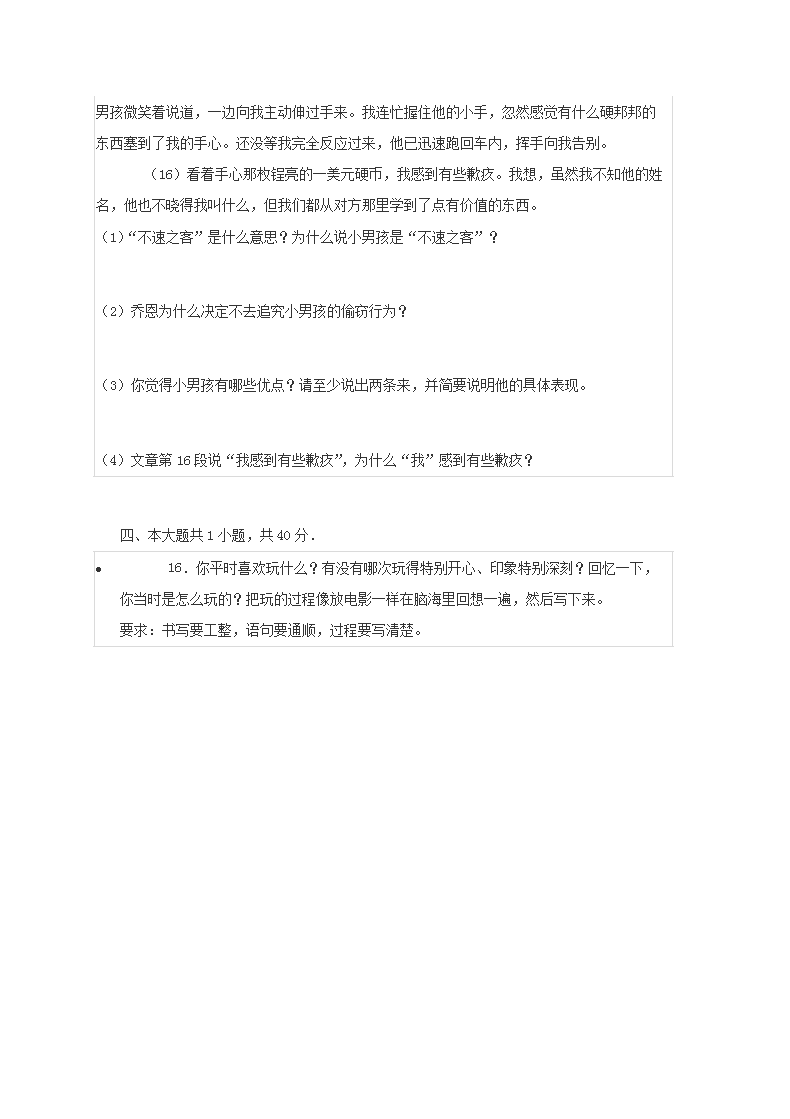【文档预览】 无忧考网整理发布2019年天津小升初语文真题及答案(Word版),前五页预览如下: