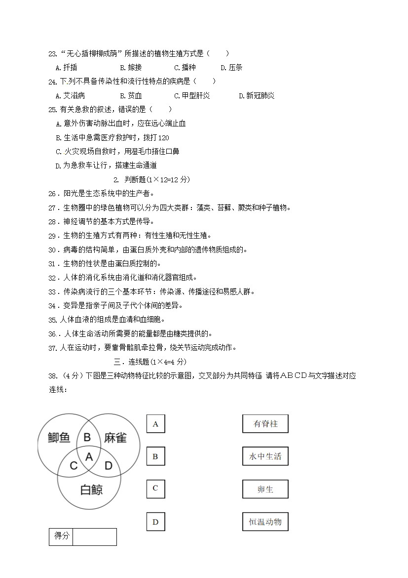 【文档名称】 2020黑龙江牡丹江朝鲜族学校中考生物真题及答案(Word版).doc