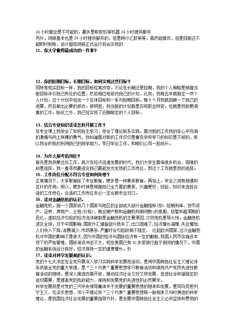 【文档名称】 云南农村信用社历年面试真题集(Word版).doc