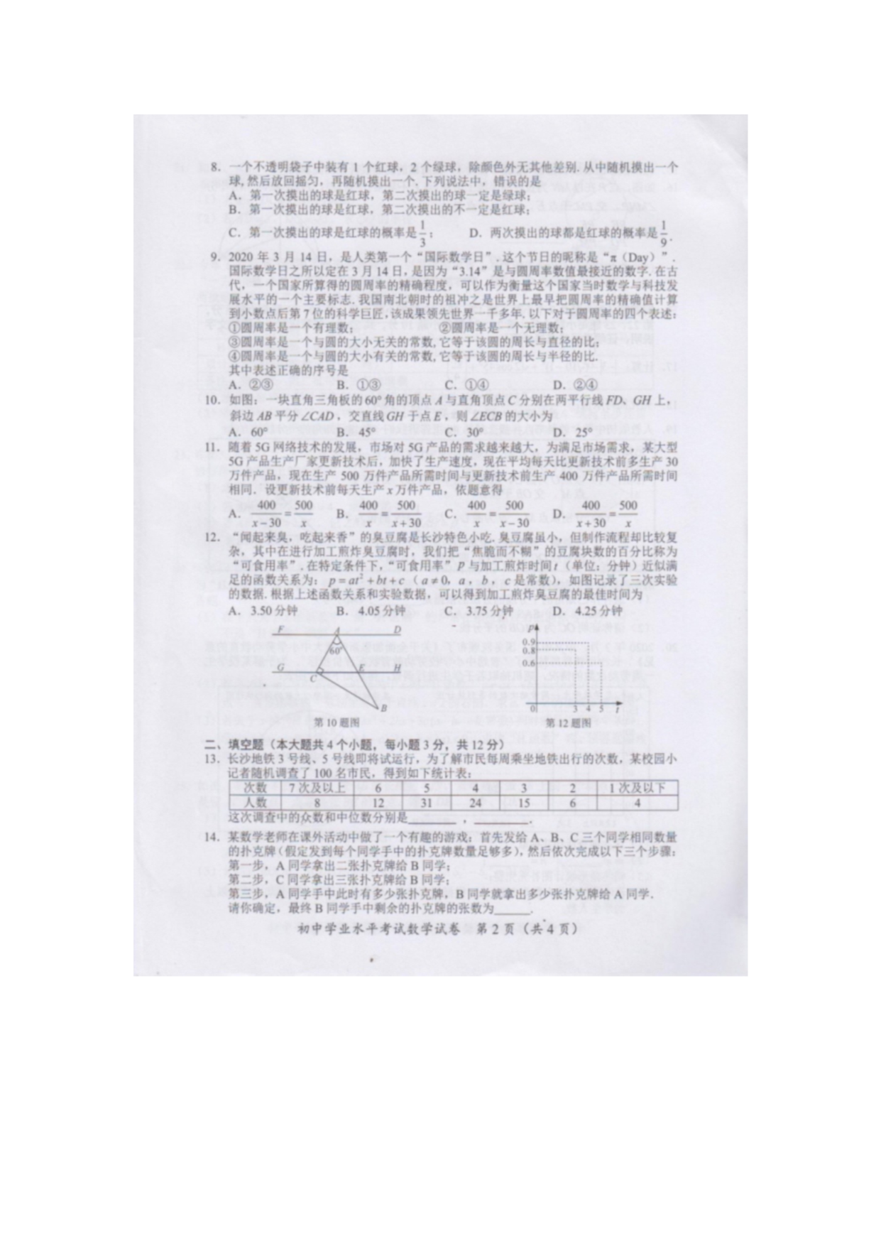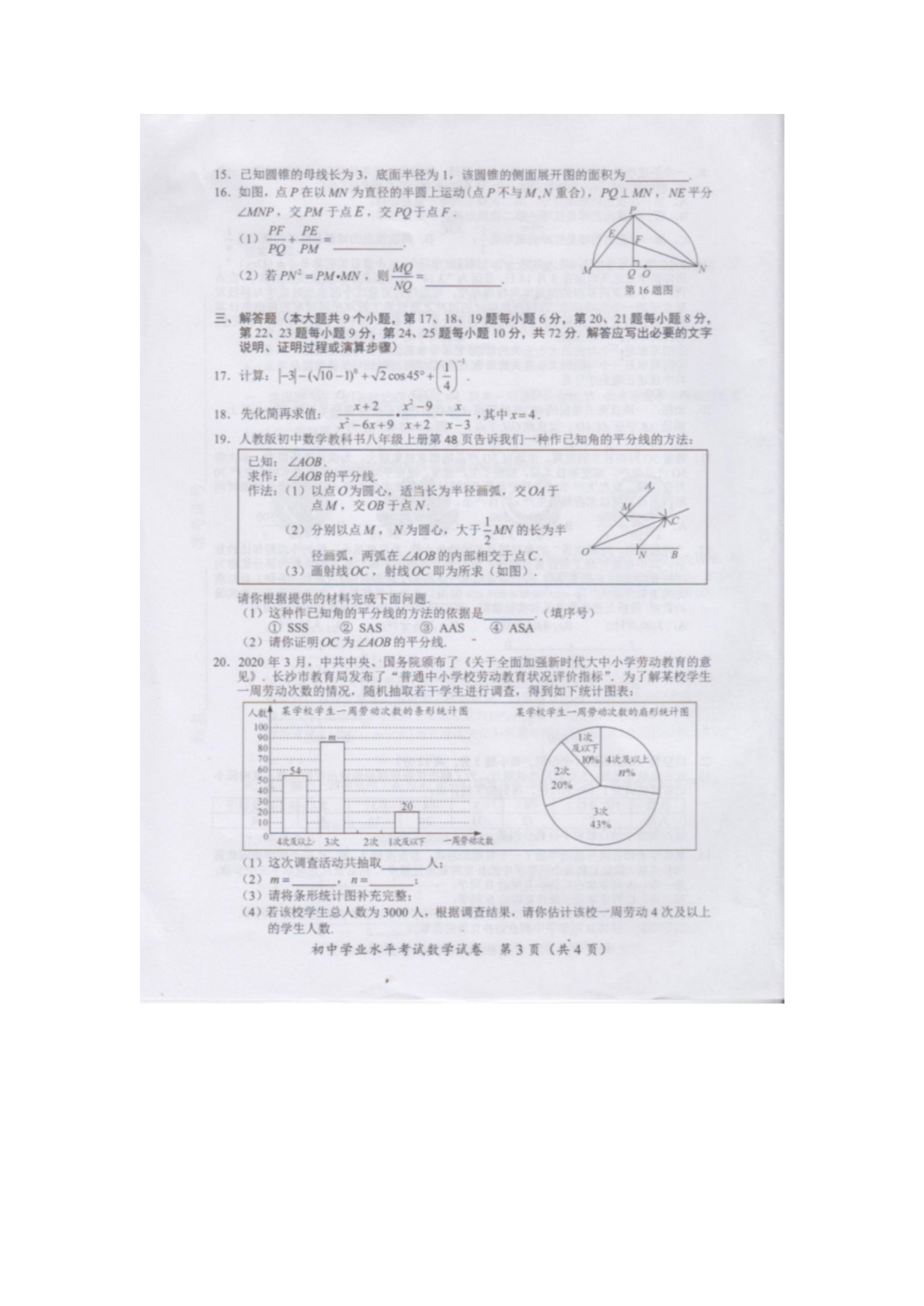 【文档名称】 2020年湖南长沙中考数学试题及答案(图片版).doc
