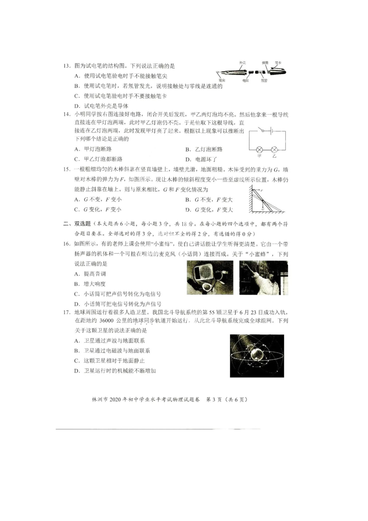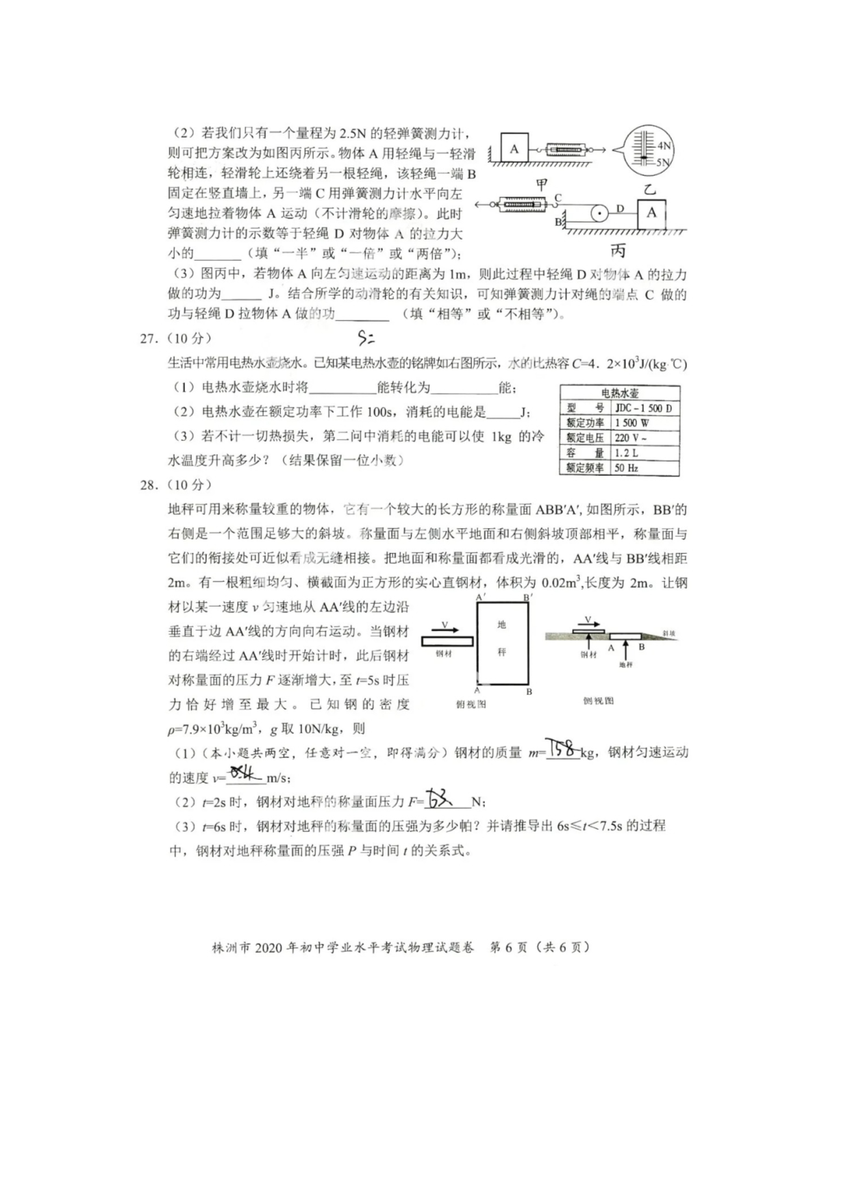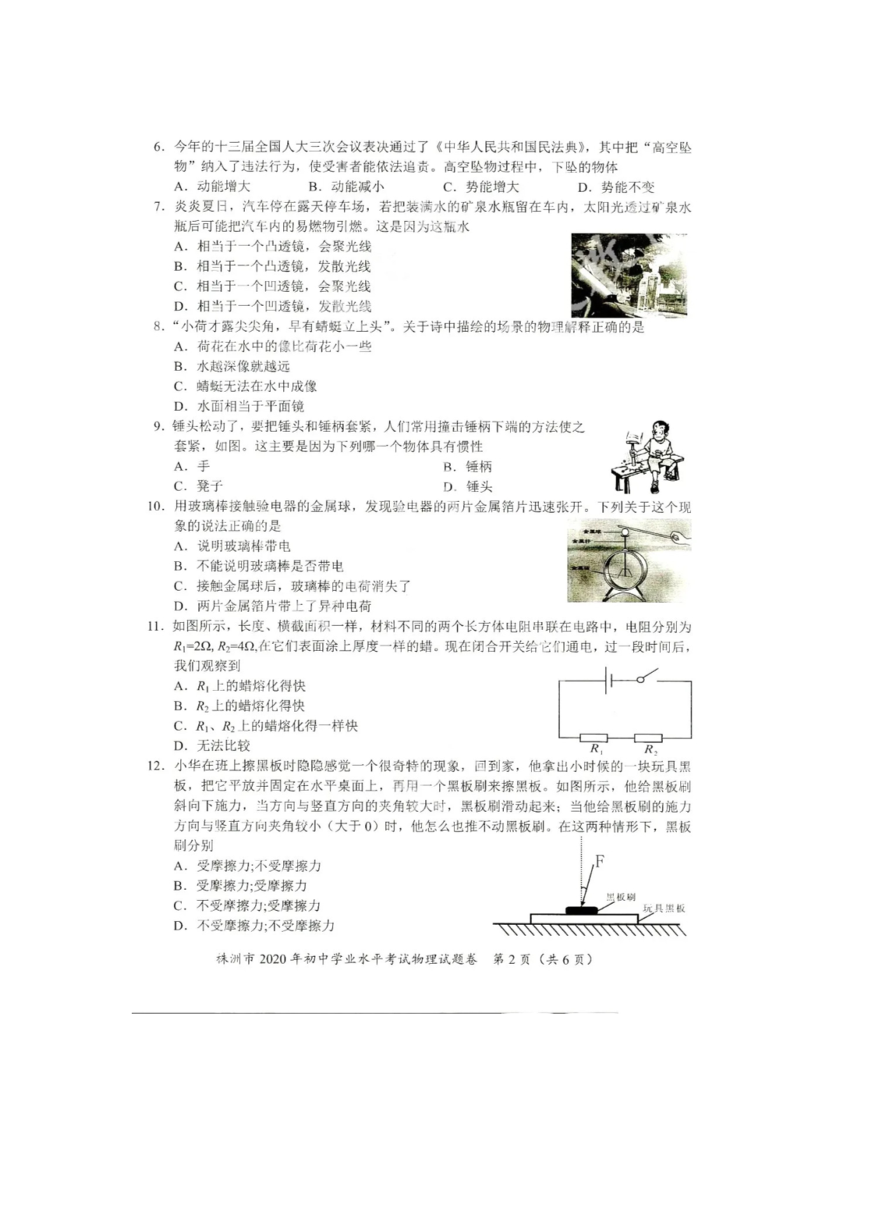 【文档名称】 2020年湖南株洲中考物理试题及答案(图片版).doc