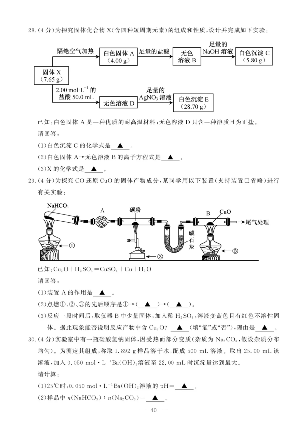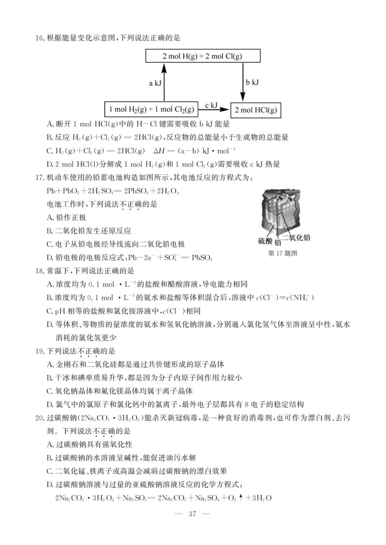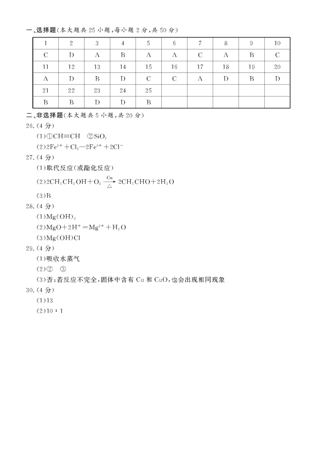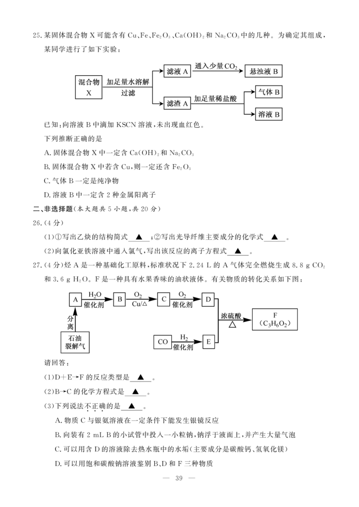 【文档名称】 2020年7月浙江高中学业水平考试化学试题及答案(图片版).doc
