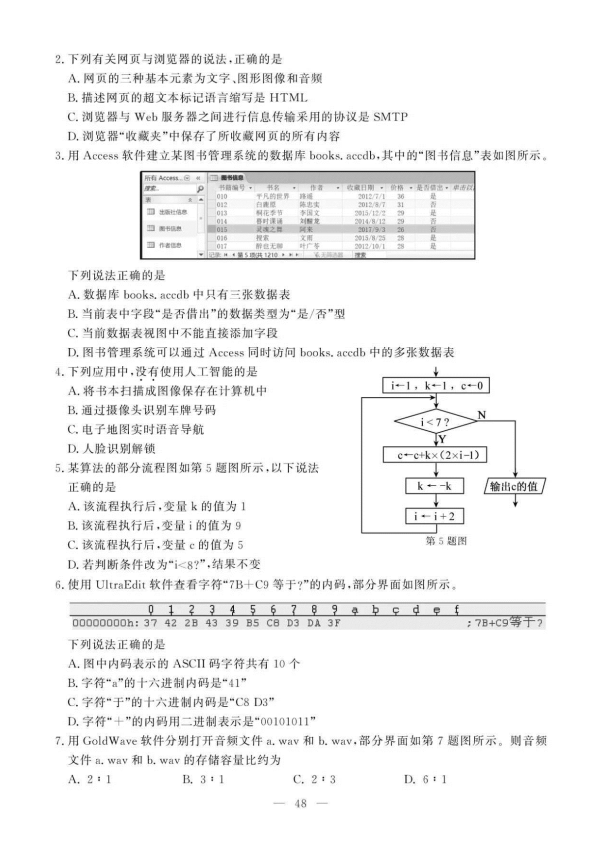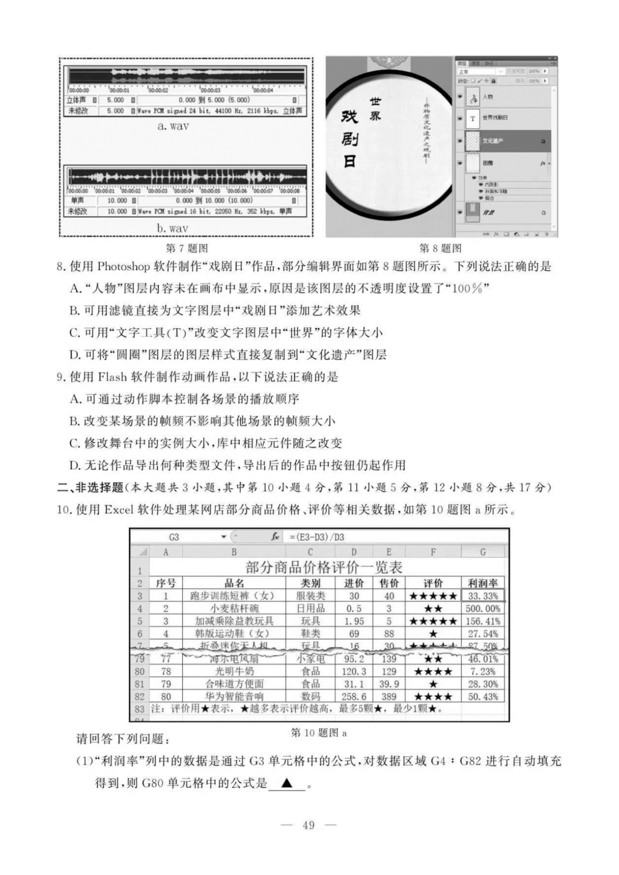 【文档名称】 2020年7月浙江高中学业水平考试信息技术试题及答案(图片版).doc