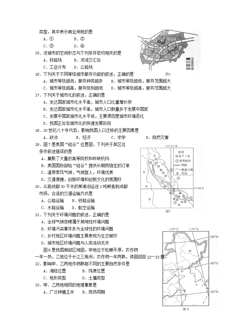 【文档名称】 2019年四川普通高中会考地理真题(Word版).doc