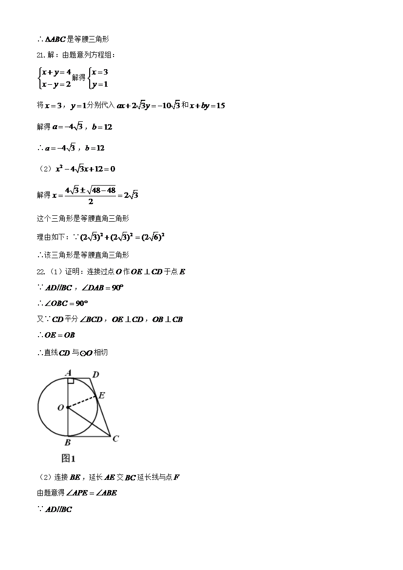 【文档名称】 2020年广东汕尾中考数学真题及答案(Word版).doc