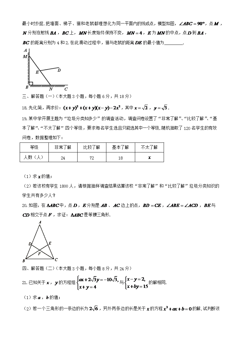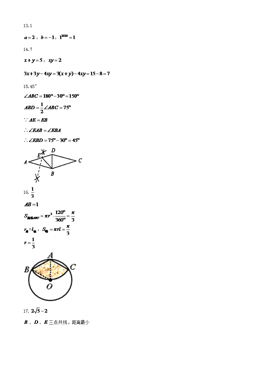 【文档名称】 2020年广东云浮中考数学真题及答案(Word版).doc