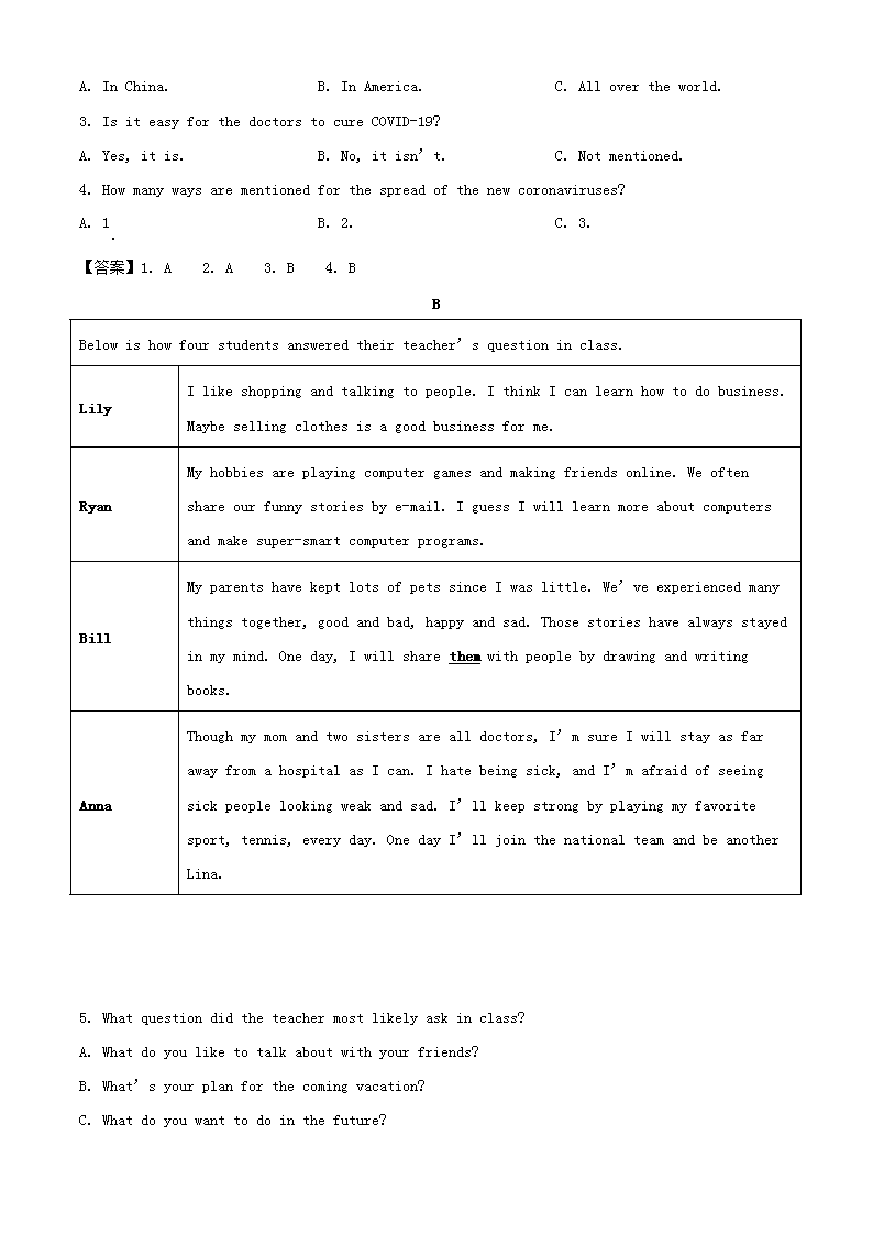 【文档名称】 2020年湖南常德中考英语试题及答案(Word版).doc