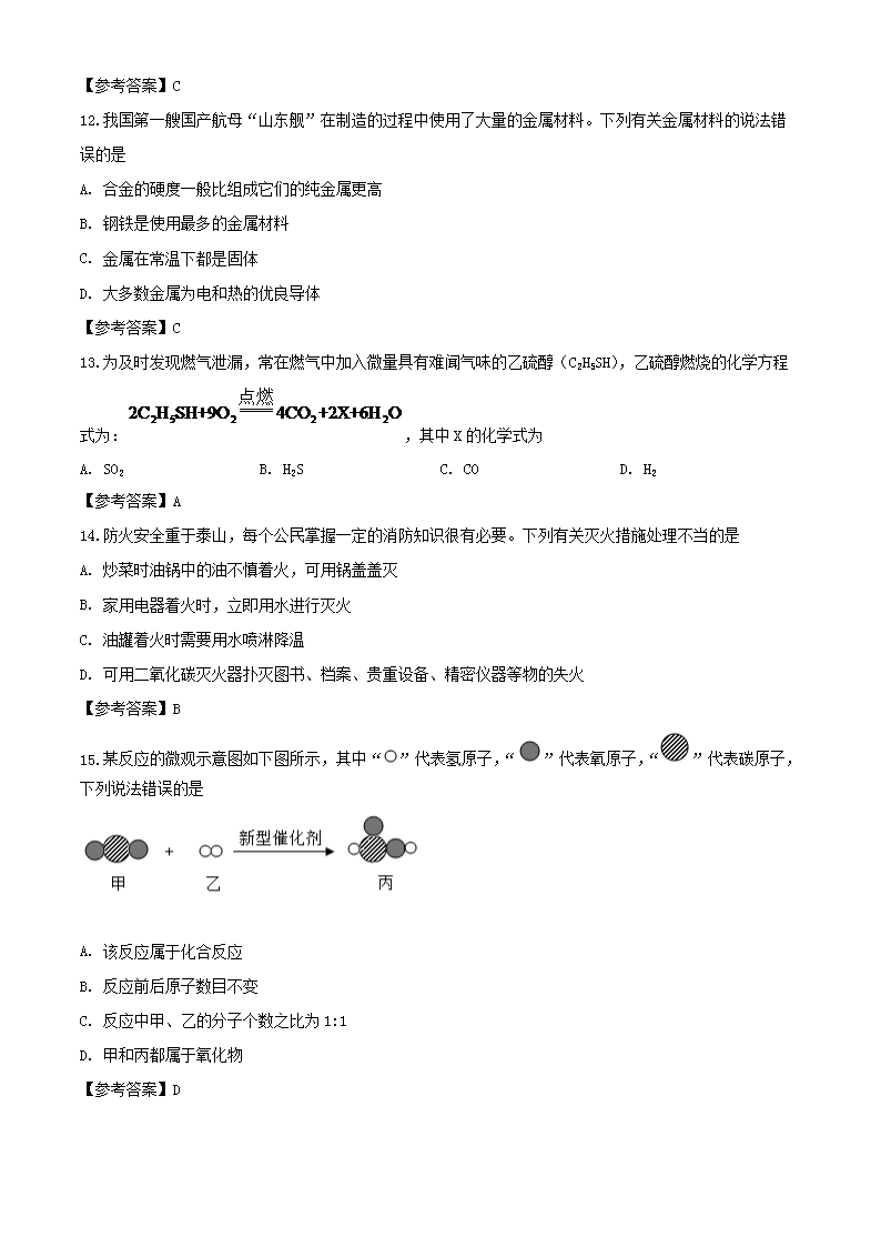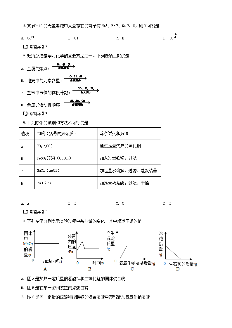 【文档名称】 2020年湖南湘潭中考化学试题及答案(Word版).doc