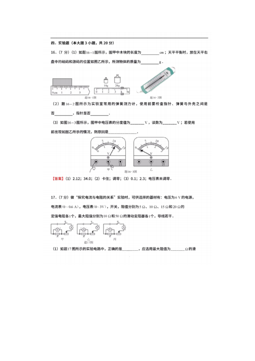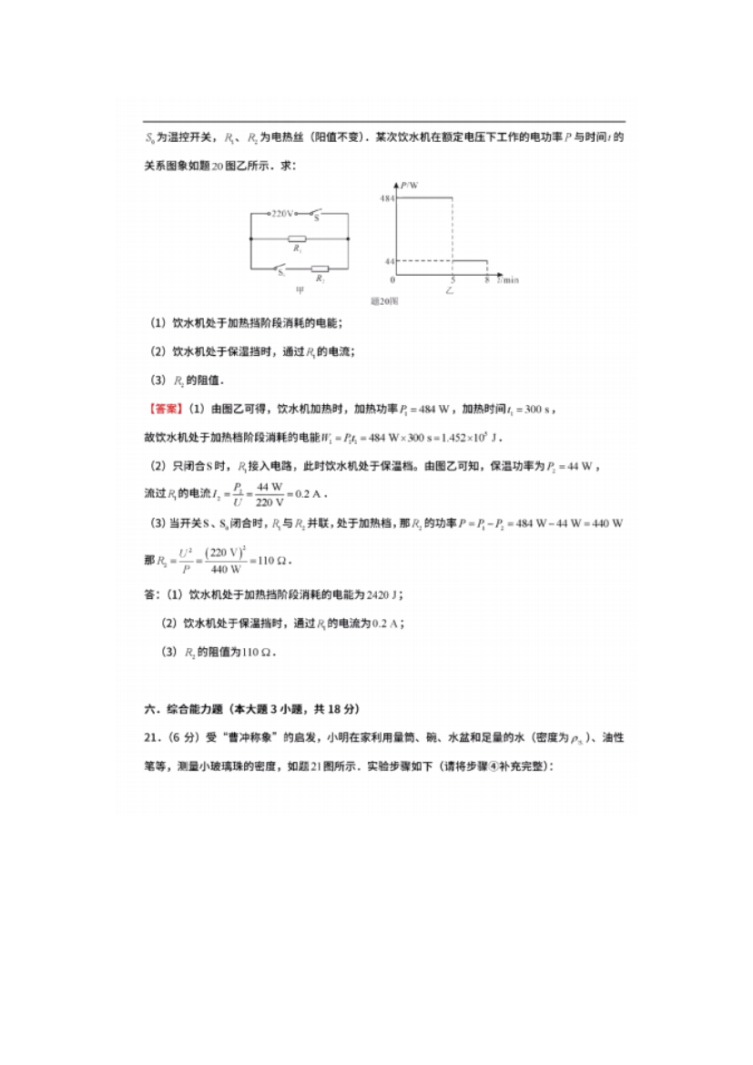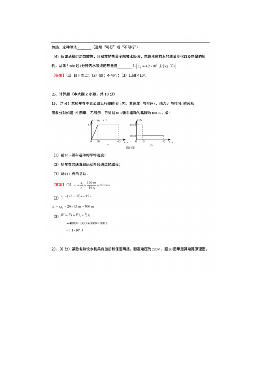 【文档名称】 2020广东汕尾中考物理真题及答案(图片版).doc