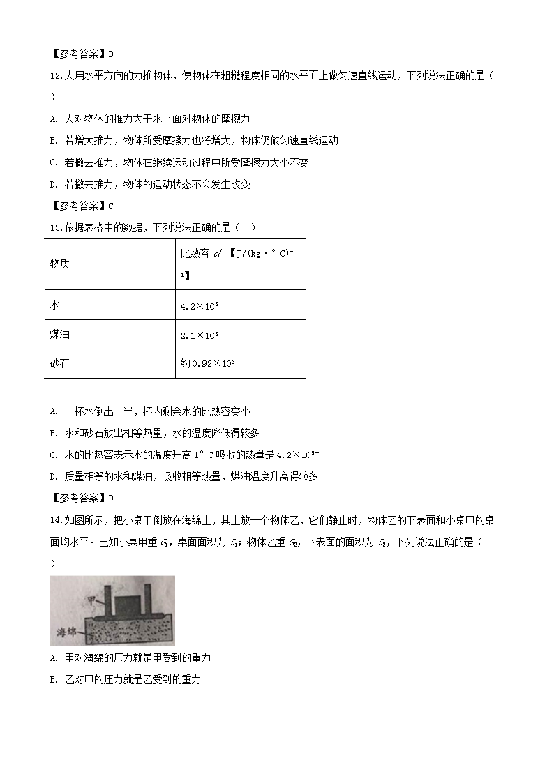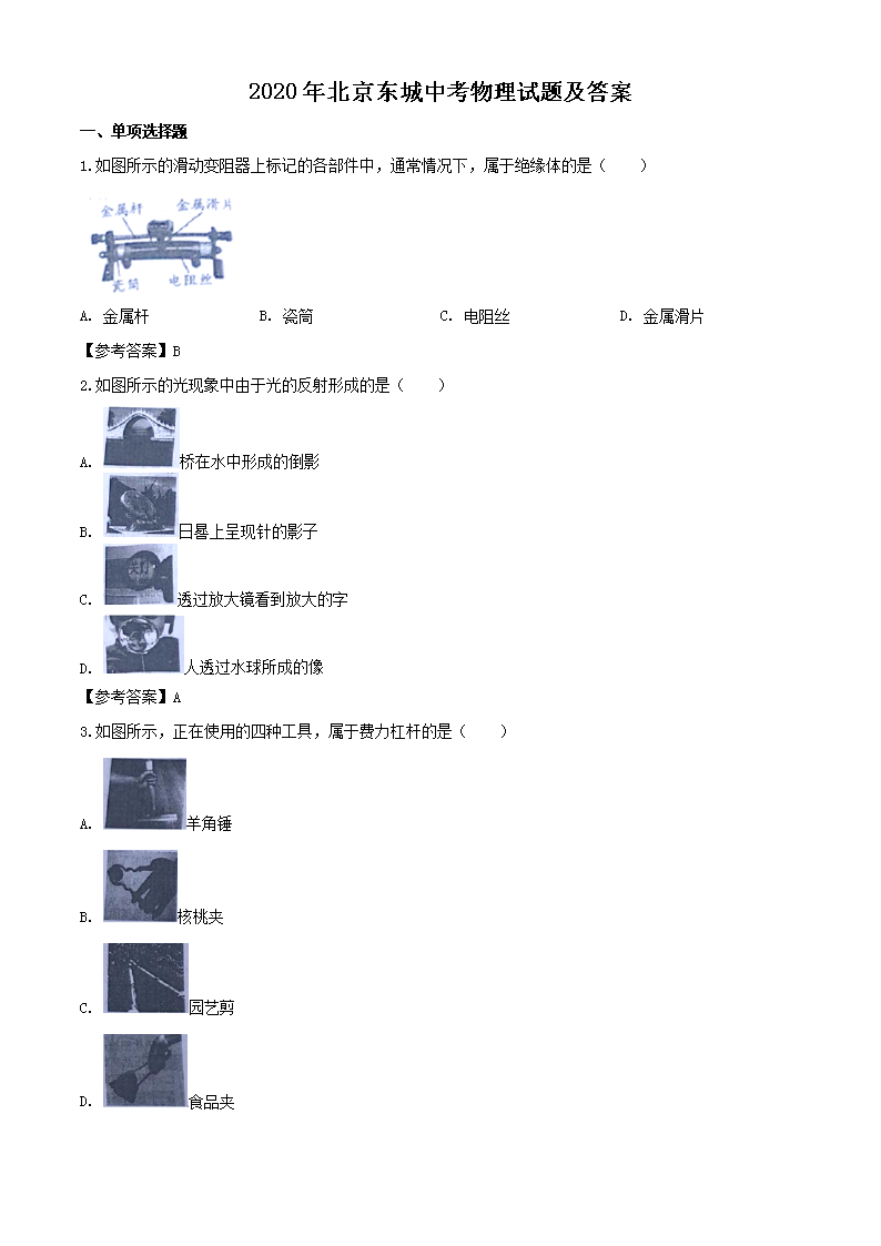 【文档名称】 2020年北京东城中考物理试题及答案(Word版).doc