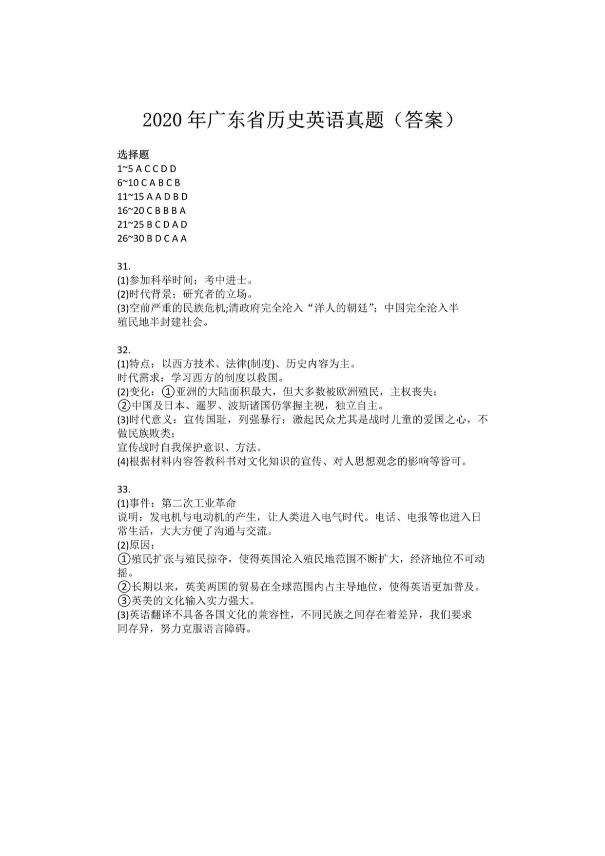 【文档名称】 2020年广东汕尾中考历史真题及答案(图片版).doc