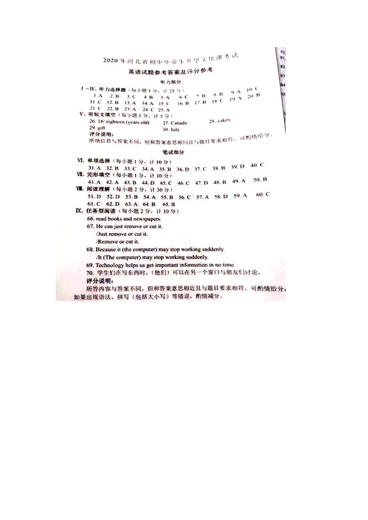 【文档名称】 2020年河北秦皇岛中考英语试题及答案(图片版).doc