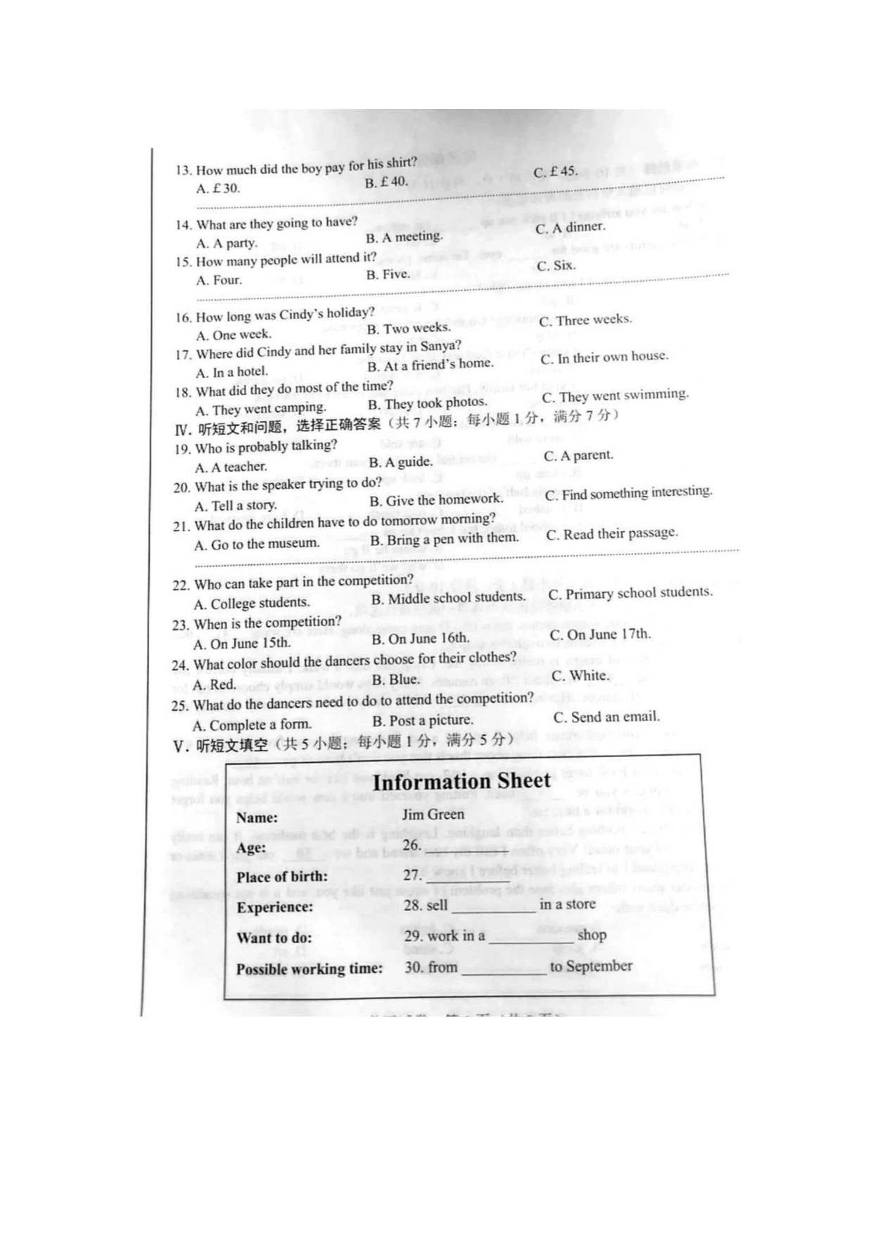【文档预览】 无忧考网整理发布2020年河北邢台中考英语试题及答案(图片版),前五页预览如下:
