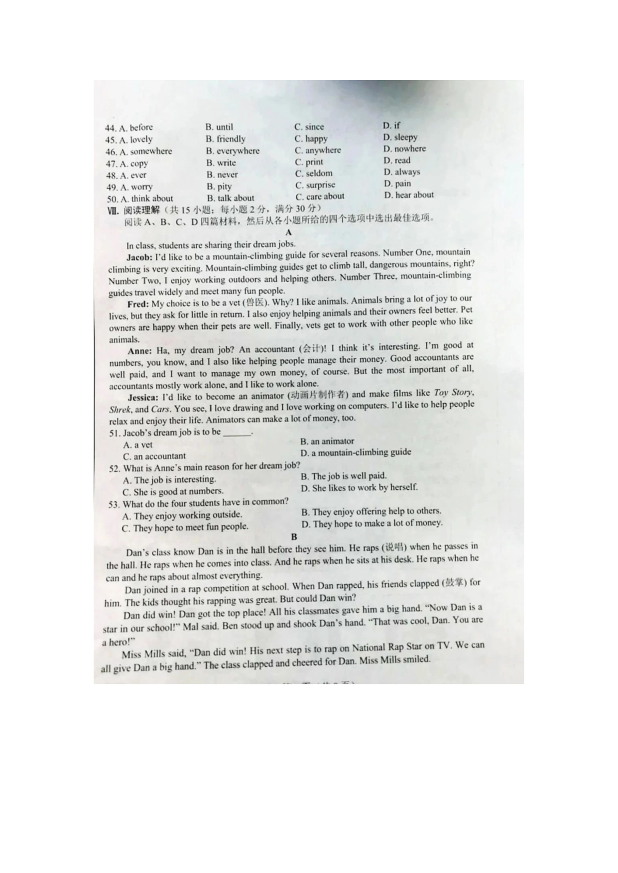 【文档名称】 2020年河北张家口中考英语试题及答案(图片版).doc