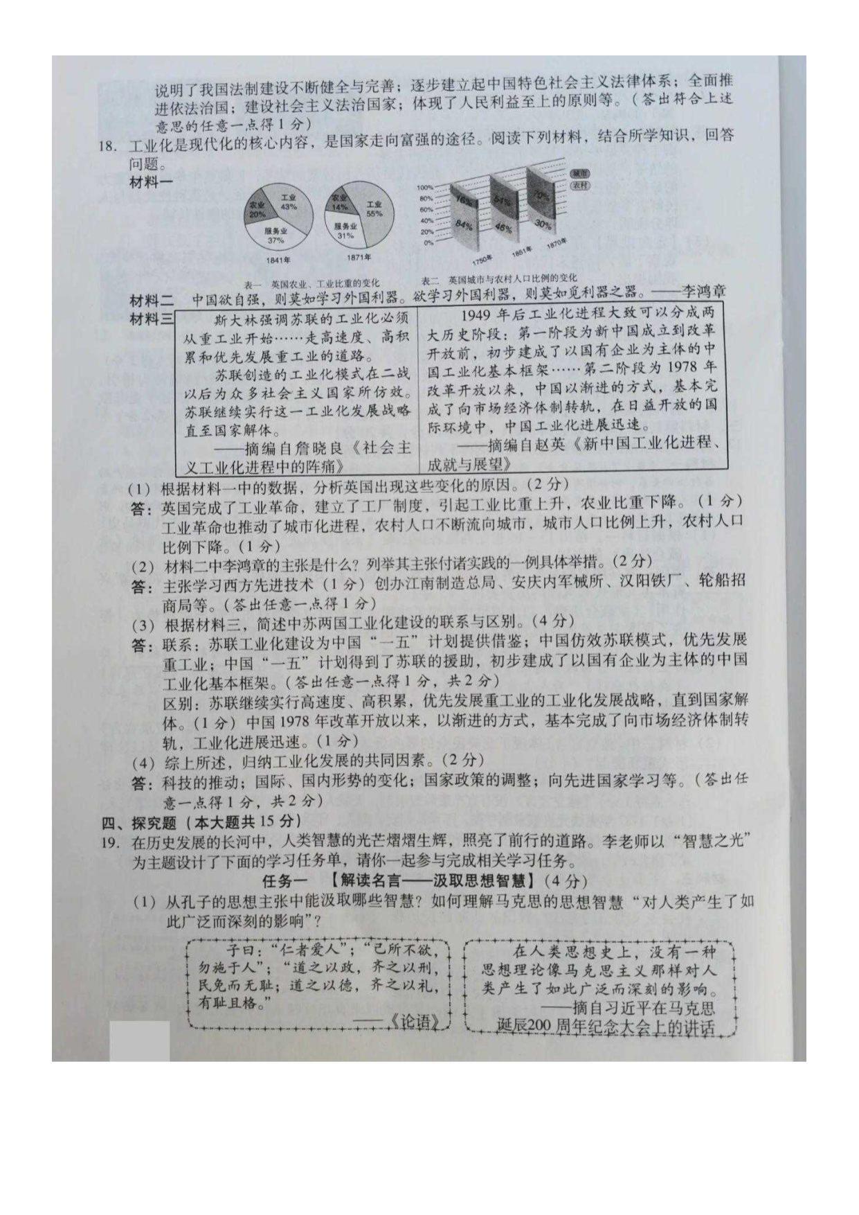 【文档名称】 2020年山西朔州中考历史试题及答案(图片版).doc