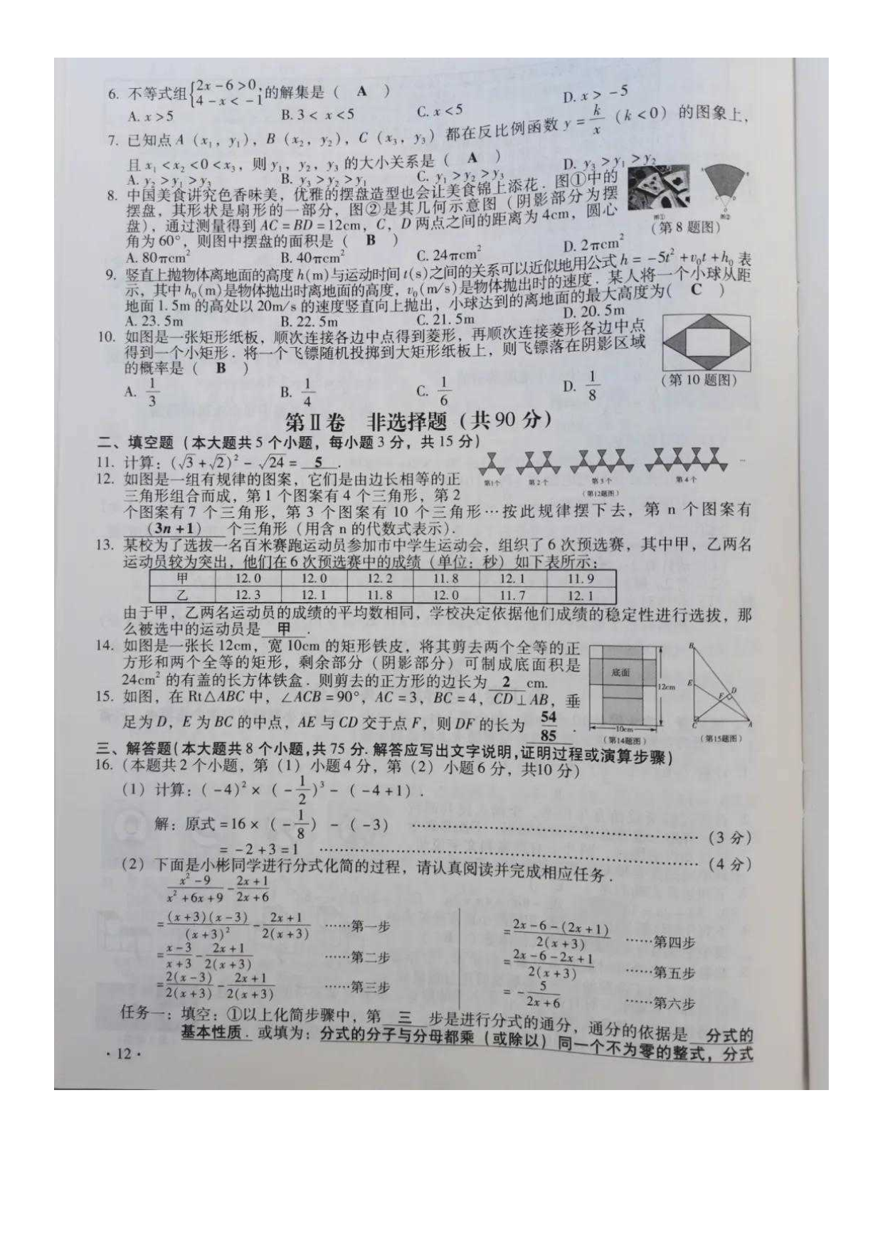 【文档名称】 2020年山西朔州中考数学试题及答案(图片版).doc