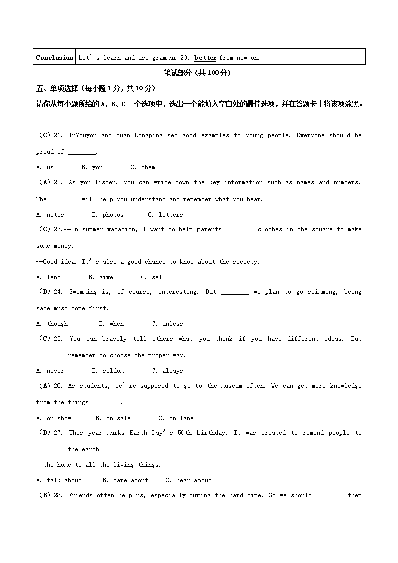 【文档预览】 无忧考网整理发布2020年山西朔州中考英语试题及答案(Word版),前五页预览如下: