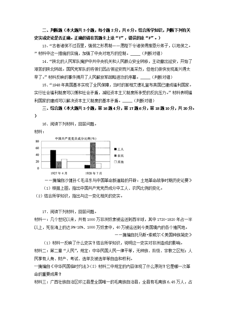 【文档名称】 2020年江西赣州中考历史试卷及答案(图片版).doc