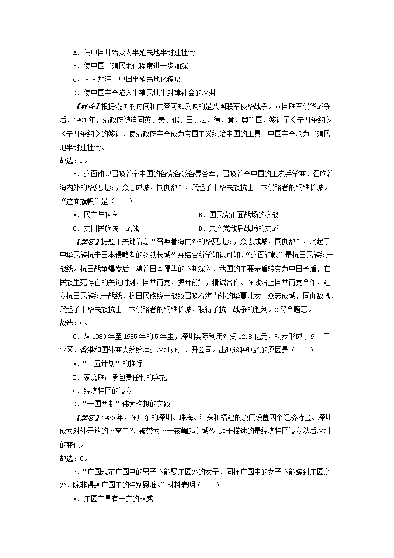 【文档预览】 无忧考网整理发布2020年江西九江中考历史试卷及答案(图片版),前五页预览如下: