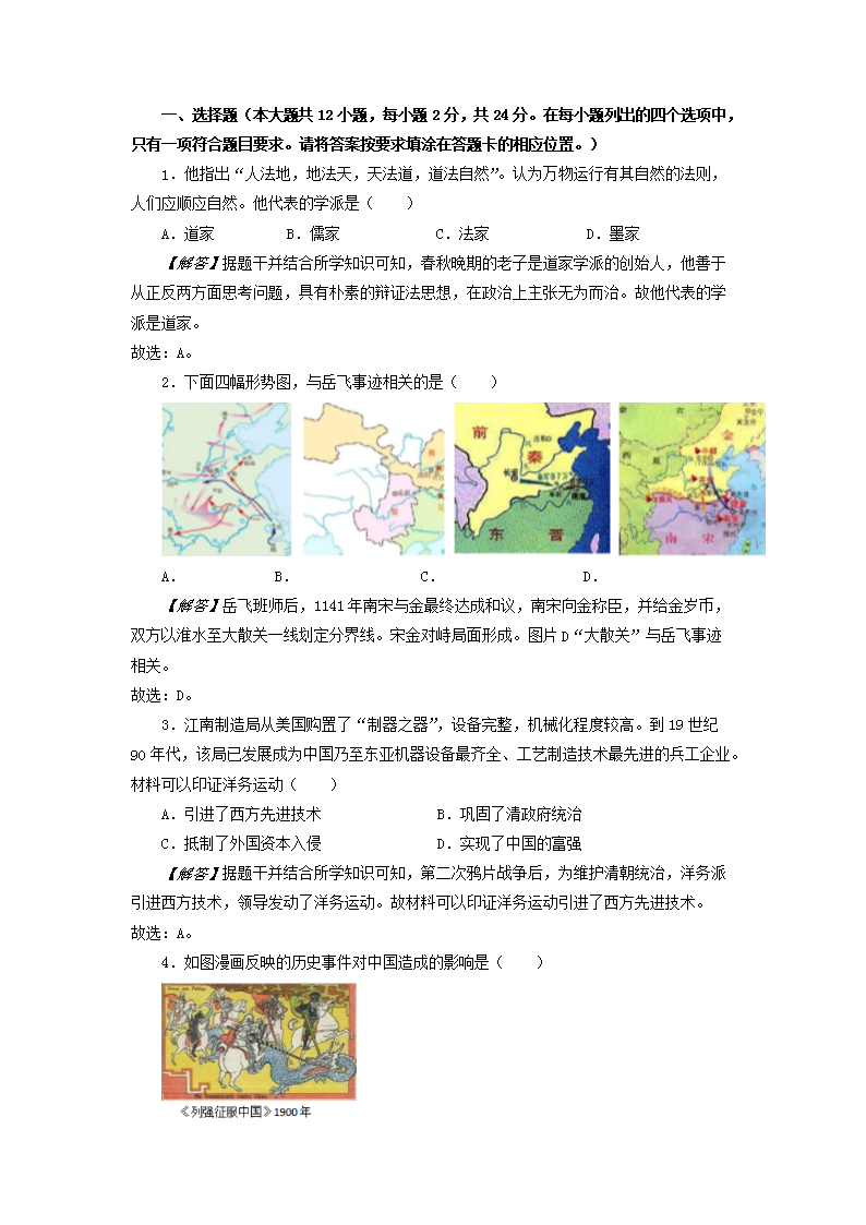 【文档名称】 2020年江西九江中考历史试卷及答案(图片版).doc