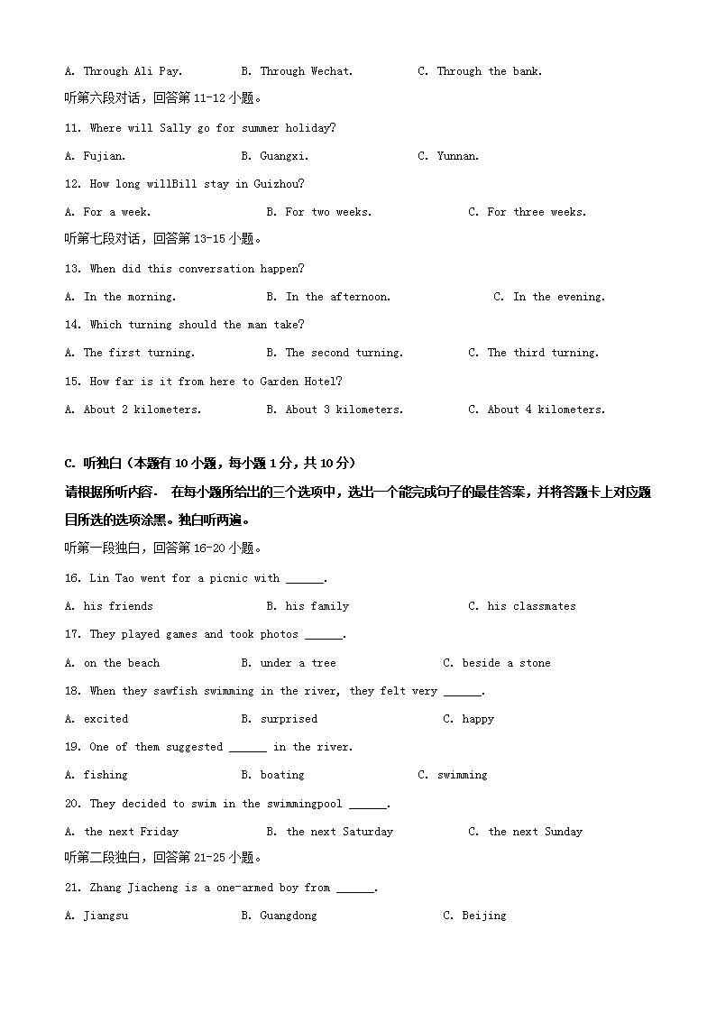 【文档名称】 2020年广东潮州中考英语试题及答案(Word版).doc