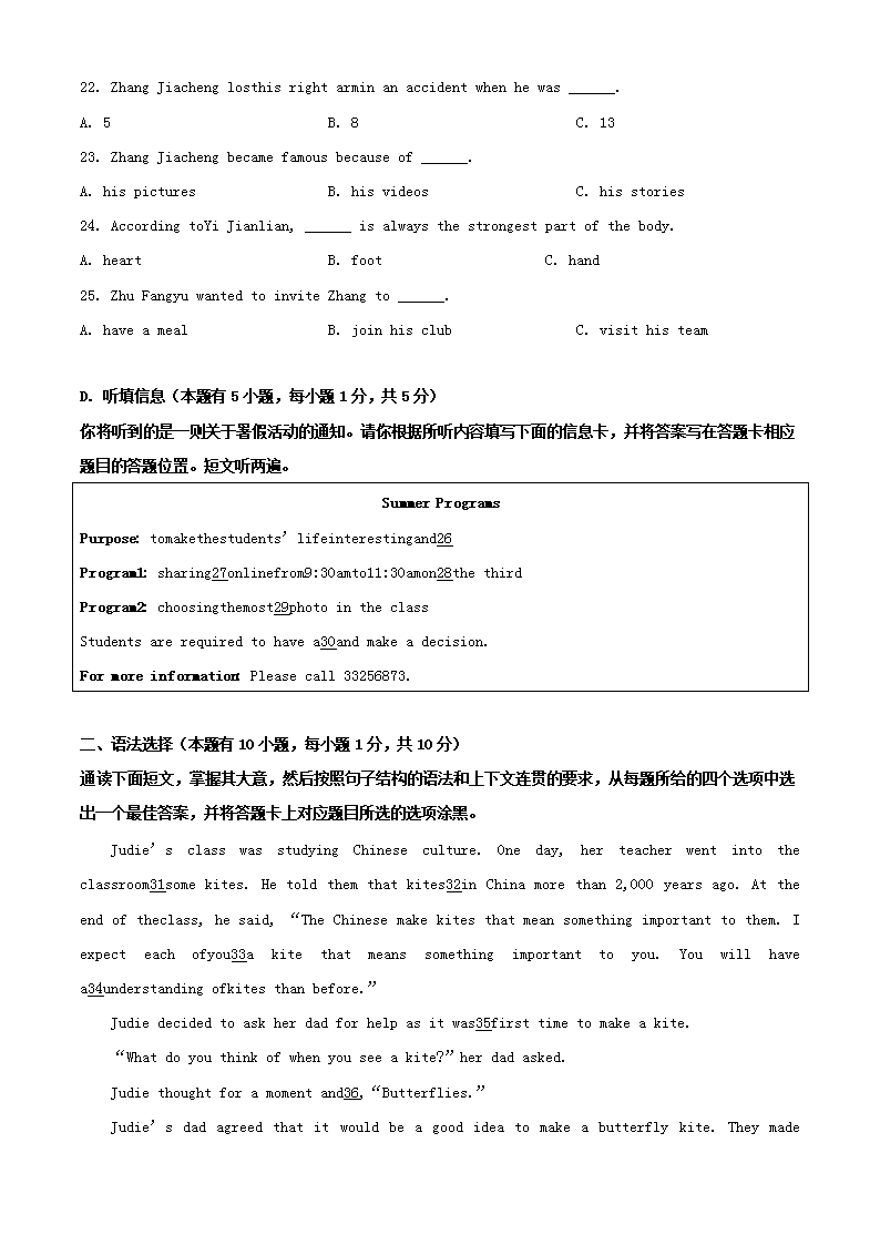 【文档预览】 无忧考网整理发布2020年广东佛山中考英语试题及答案(Word版),前五页预览如下: