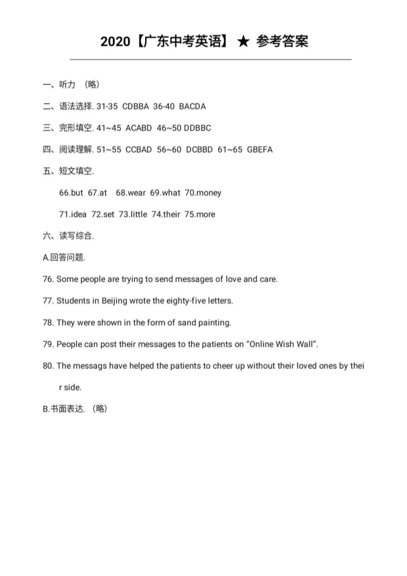 【文档名称】 2020年广东佛山中考英语试题及答案(Word版).doc