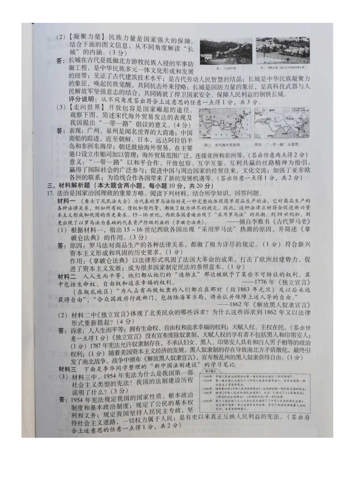 【文档名称】 2020年山西忻州中考历史试题及答案(图片版).doc